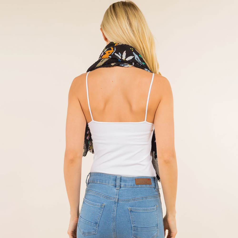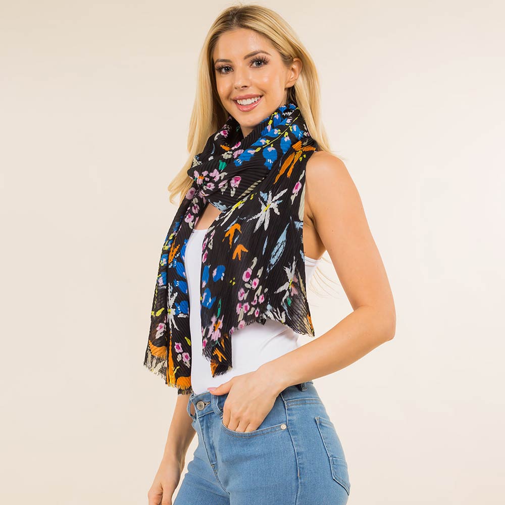 Details • Size : One Size • Material : 100% Polyester • This floral print fashion scarf features a lightweight drape and easy-to-style silhouette for everyday outfits, travel, and seasonal layering. Designed to complement casual and dress looks, it adds visual interest without bulk. A versatile accessory ideal for boutiques, gifting, and trend-driven collections.