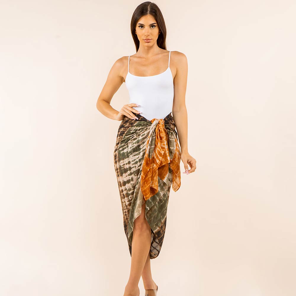 • Versatile tie-dye sarong wrap designed for multiple styling options including skirt, dress, or halter cover-up. Lightweight drape offers effortless wear for beach days, poolside lounging, travel outfits, and resort styling. A flexible layering essential ideal for seasonal collections and boutique merchandising.