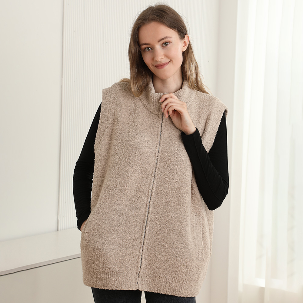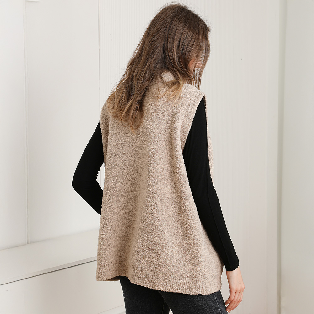 Cozy Solid Oversized Zipper Front Pocket Sweater Vest