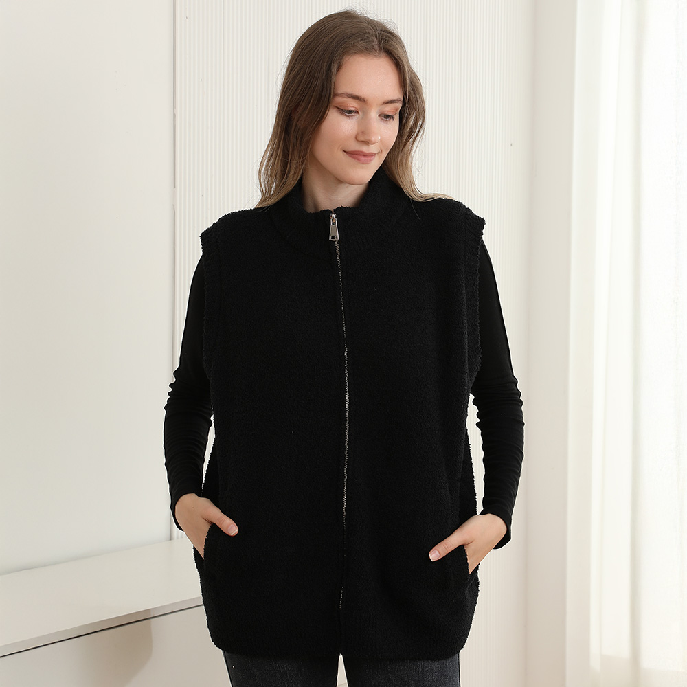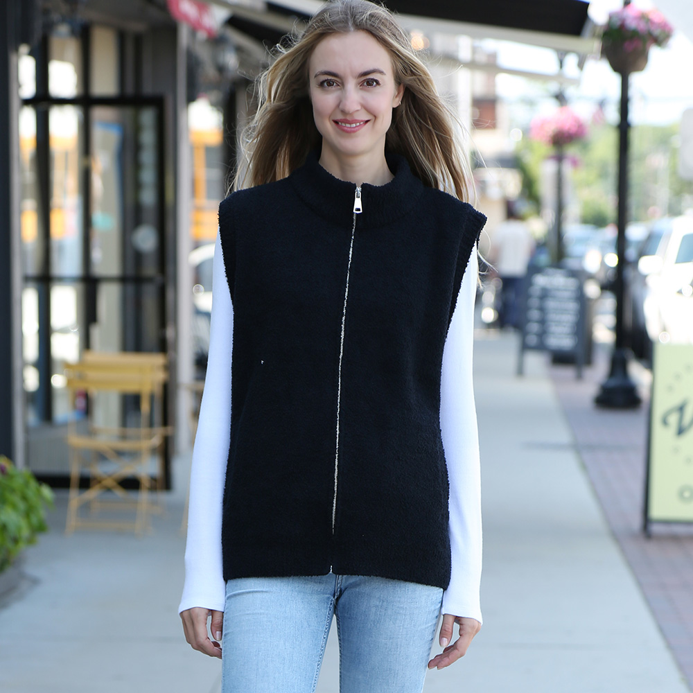Cozy Solid Oversized Zipper Front Pocket Sweater Vest