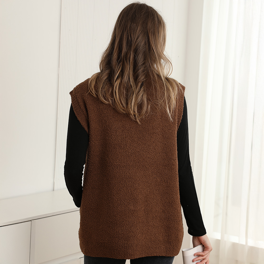 Cozy Solid Oversized Zipper Front Pocket Sweater Vest