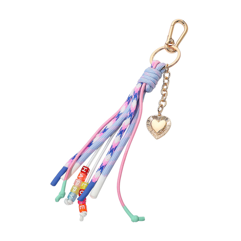 Heart Charm Drop HAPPY LOVE Message Beaded Rope Tassel Keychain Bag Charm