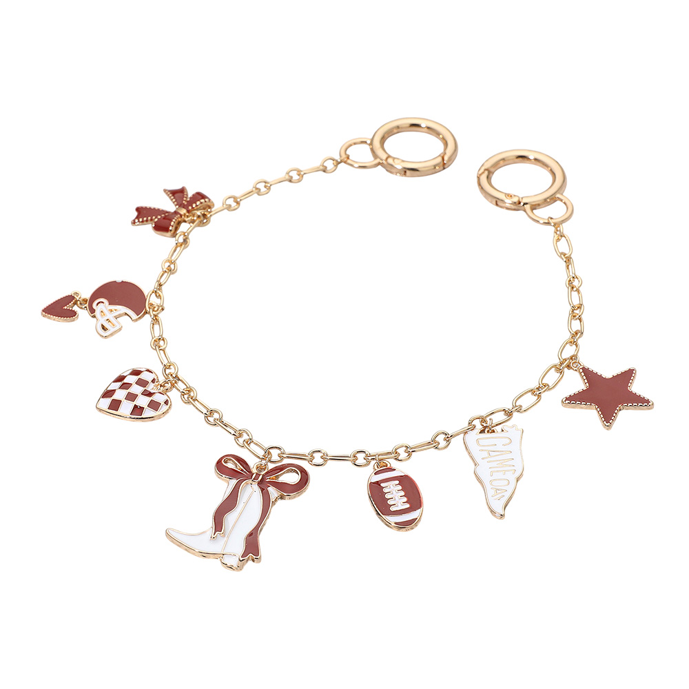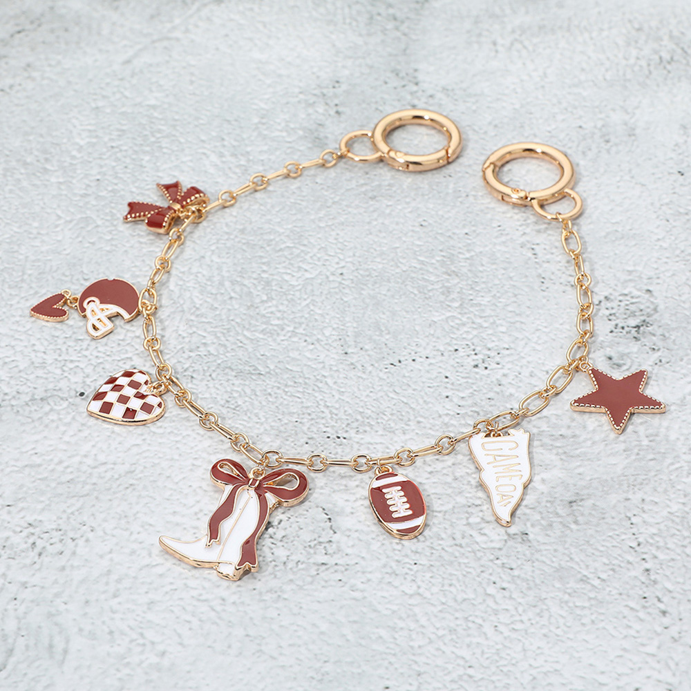 Details • Size : 13.5" L • Decor Size : 1.3" L • Bag charm featuring playful gameday accents including football, helmet, boots, stars, hearts, and cheer icons. A fun accessory to show team spirit, personalize bags, and add a sporty touch to gameday outfits. • Lead and Nickel Compliant