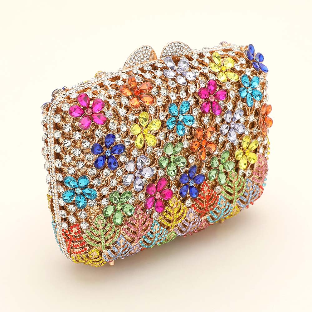 Crystal Rhinestone Embellished Flower Pattern Evening Clutch Shoulder Bag