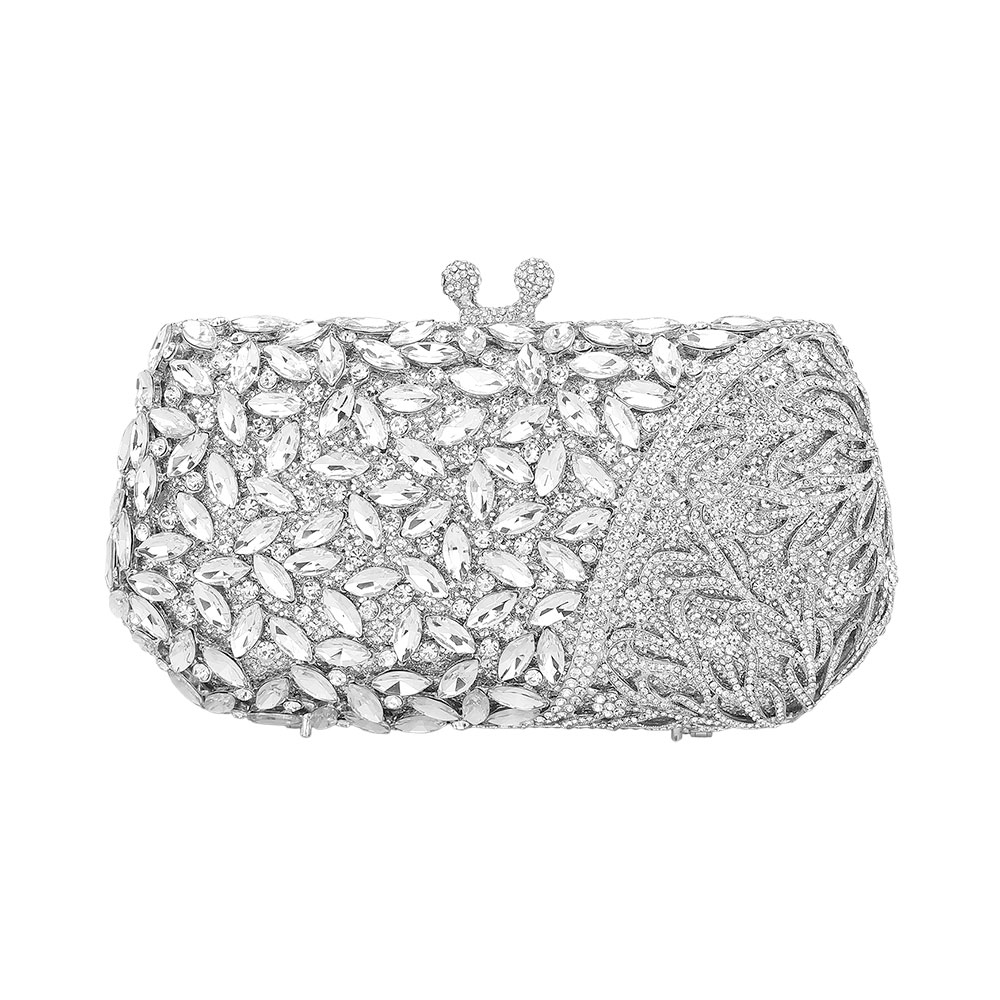 Floral Leaf Crystal Frame Evening Clutch Shoulder Bag