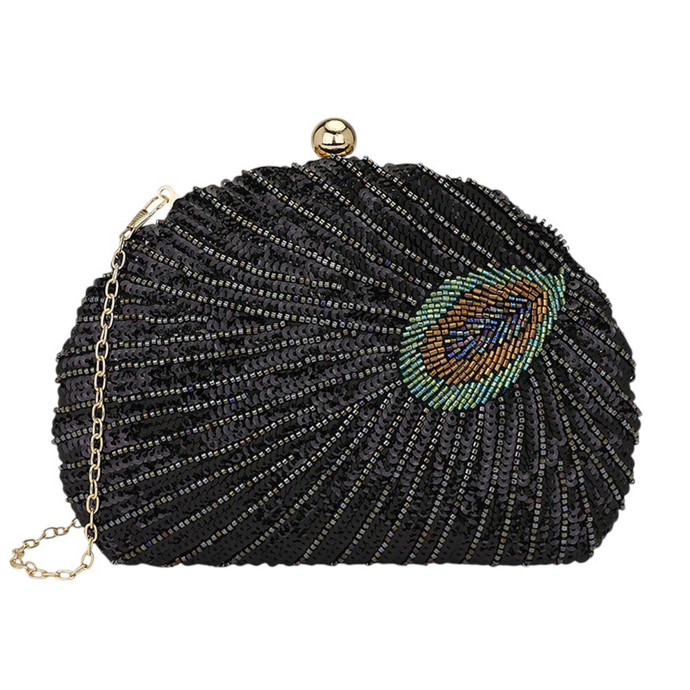 Beaded Sequin Peacock Clutch Evening Bag Crossbody Bag