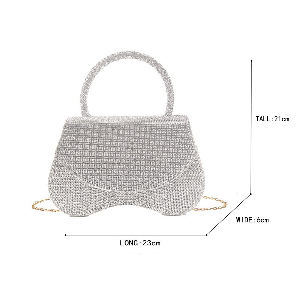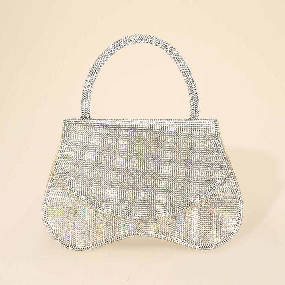• Discover a refined rhinestone handle bag featuring a sculpted flap design, spacious interior, and detachable chain strap. Perfect for evenings and special events, this statement accessory offers versatile styling and timeless sophistication in a compact form.