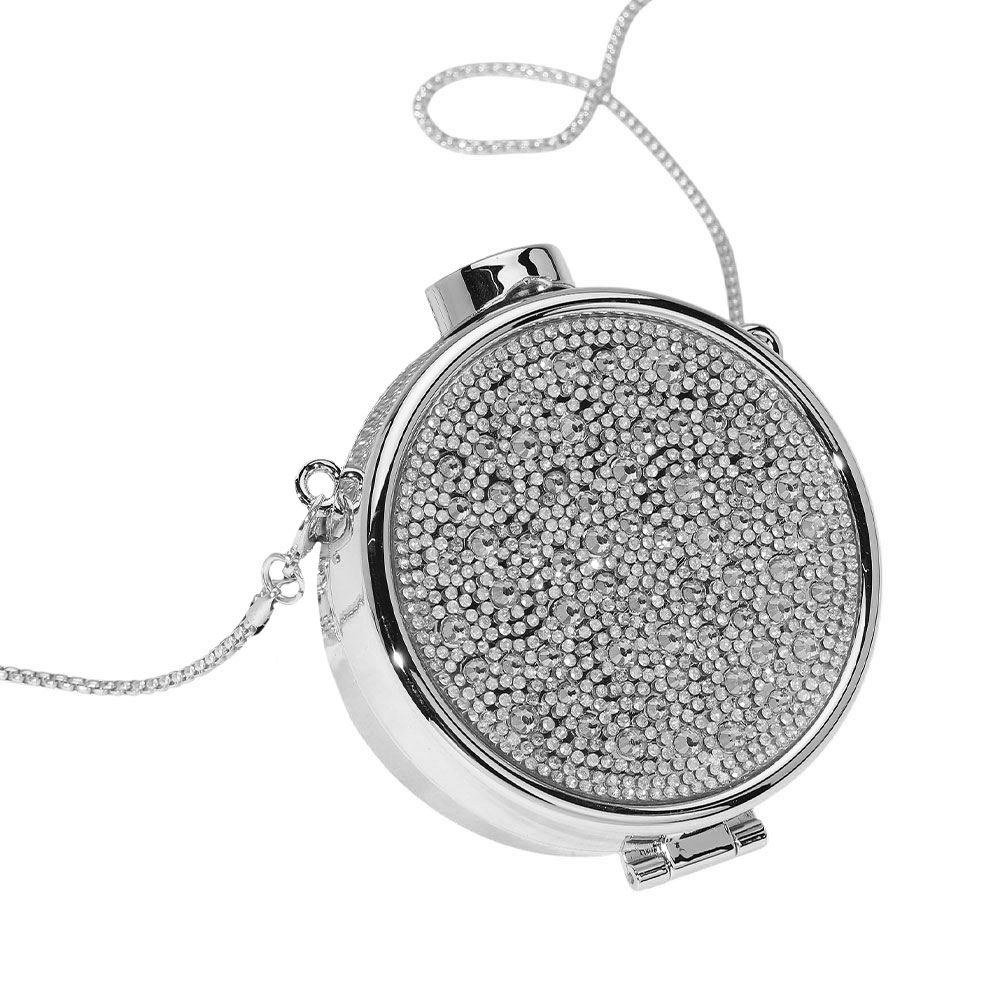 Bling Studded Round Compact Clutch Evening Bag / Crossbody Bag