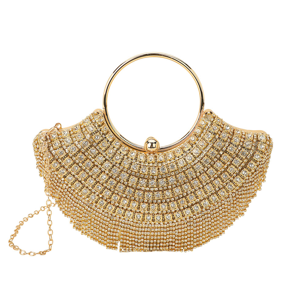 Crystal Rhinestone Fringe Embellished Round Handle Crossbody Evening Bag