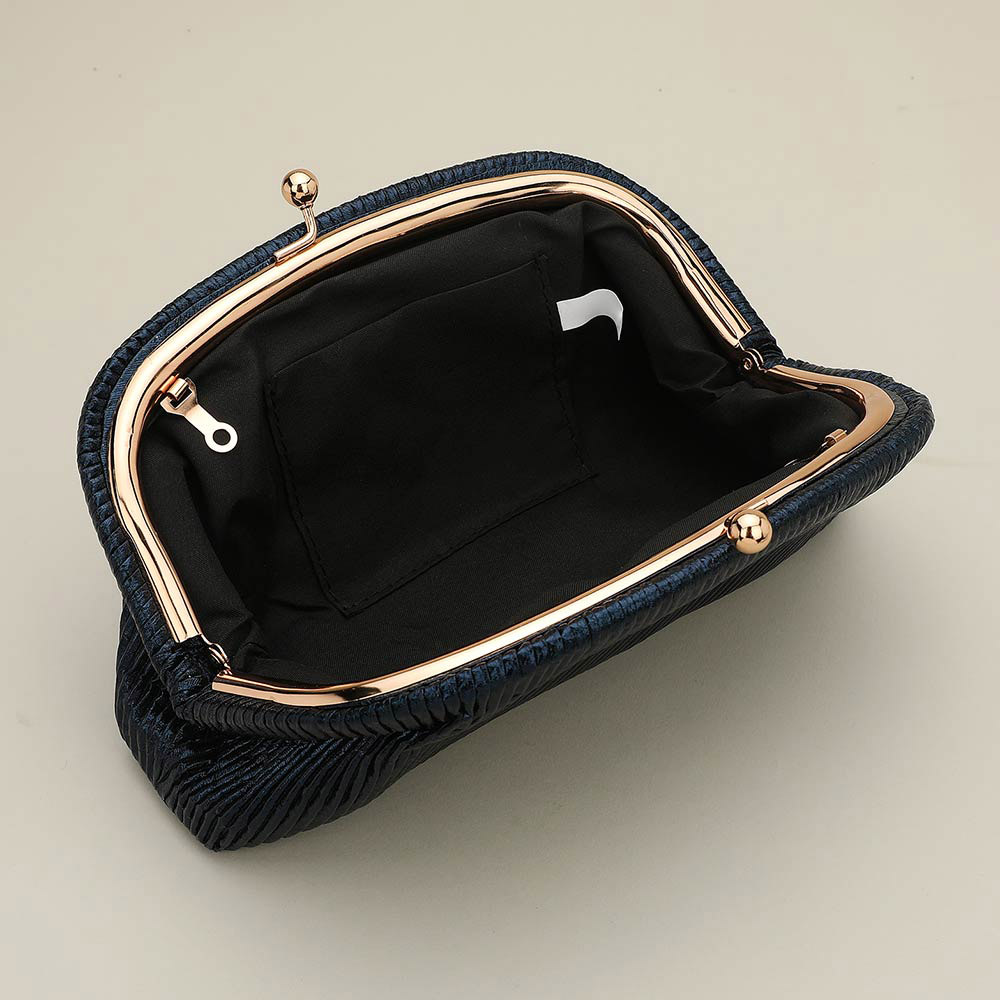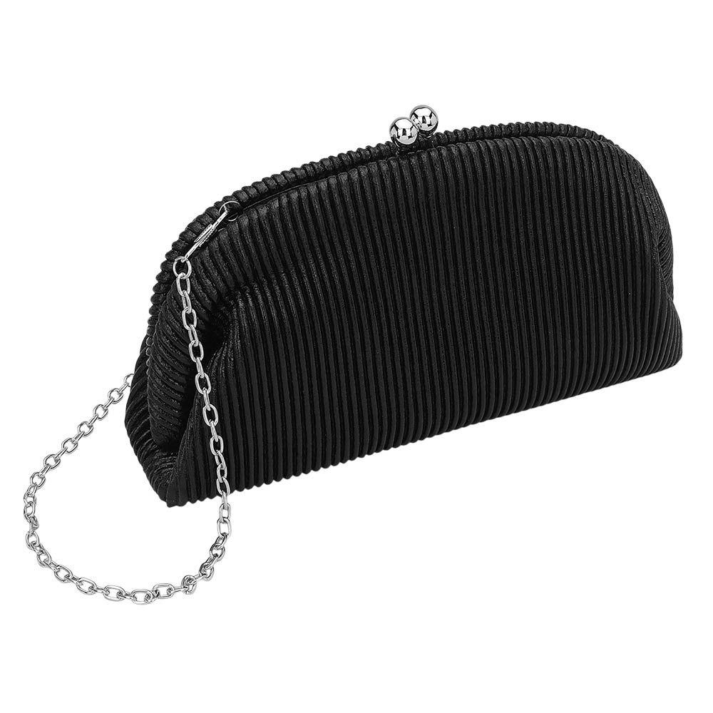 • Discover a refined pleated evening clutch designed for effortless elegance at formal events. Featuring a secure kiss-lock closure, spacious interior pocket, and detachable chain strap, this timeless accessory keeps essentials organized while elevating any special-occasion look.