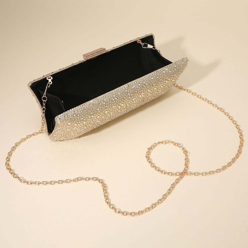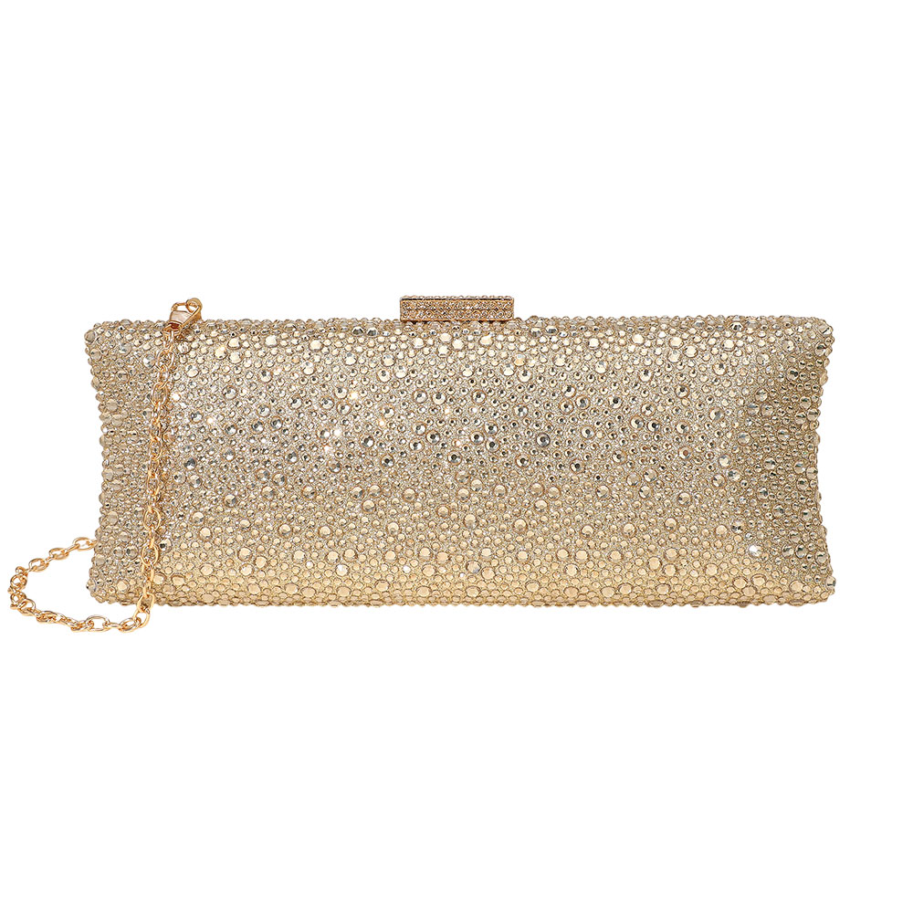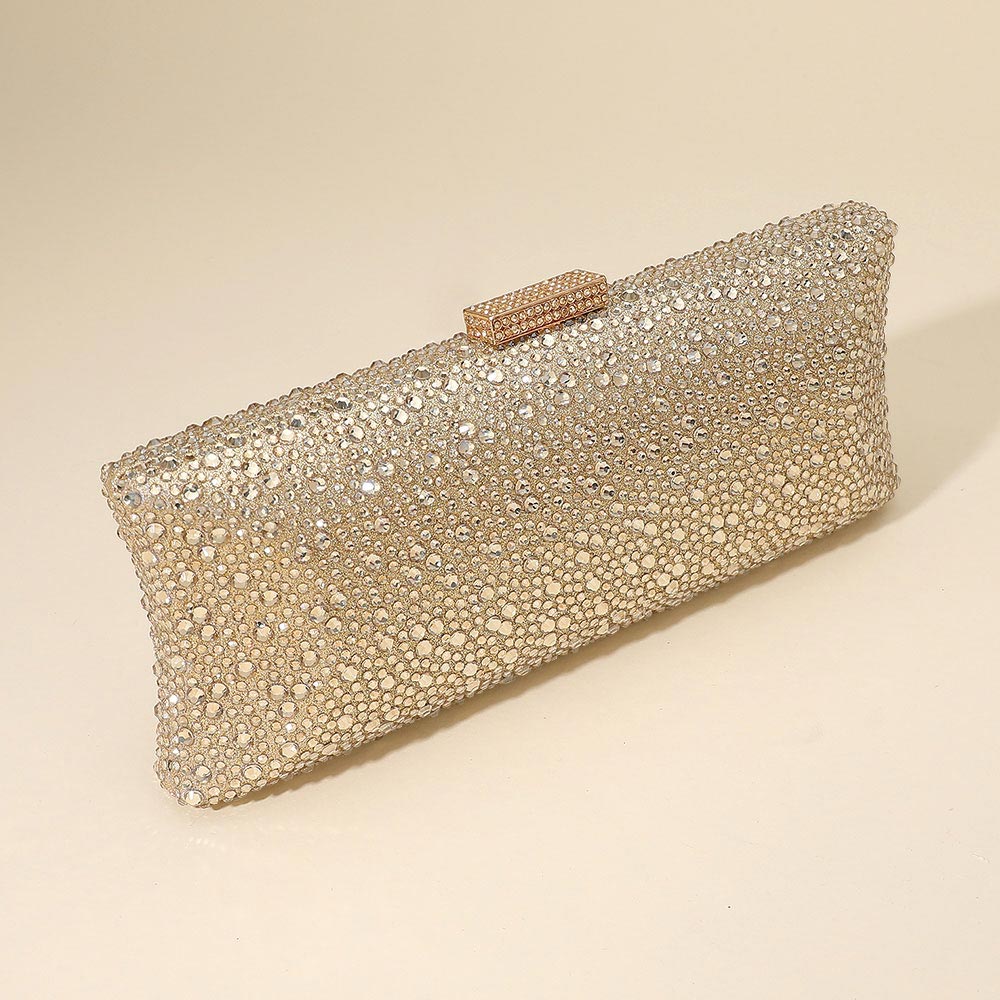 Details • Size : 9.5" X 4" X 2.25" • Strap Size : 46" L / Detachable • Clasp Closure • This dazzling rhinestone clutch adds instant glamour to any evening look. Featuring a sleek rectangular design and a detachable chain strap, it offers versatile carry options. Perfect for weddings, parties, or formal events, this clutch keeps essentials secure in chic style.
