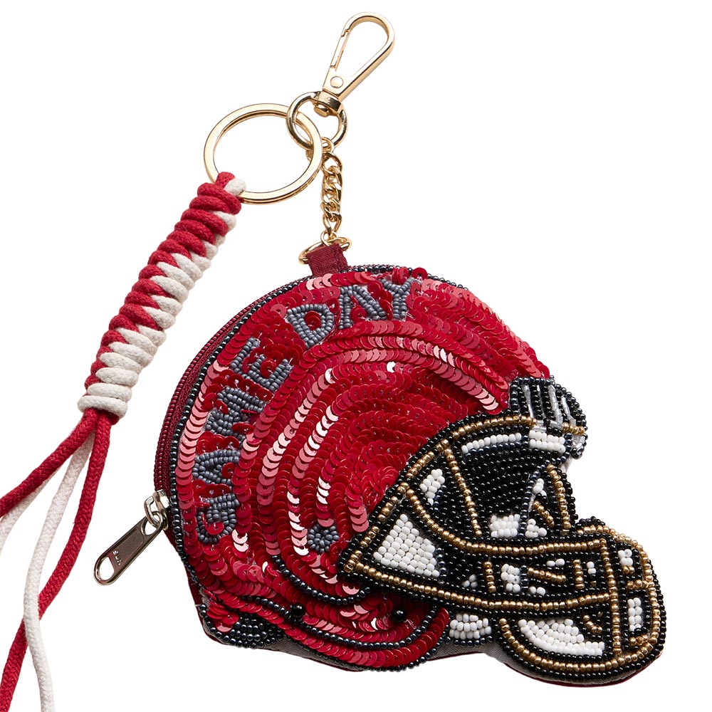 Details • Size : 4.5" X 4.75" (appx) • Decor Size : 9" L • No Inside Pocket • Beads On Front Only • Bag Only (items are not included) • Zipper Closure • Eye-catching helmet-shaped keychain pouch designed with detailed beadwork and zip closure for small essentials. Perfect for game day displays, sports-themed collections, gifting, and impulse buys, this compact accessory adds playful personality while offering practical storage on the go. • Made In India