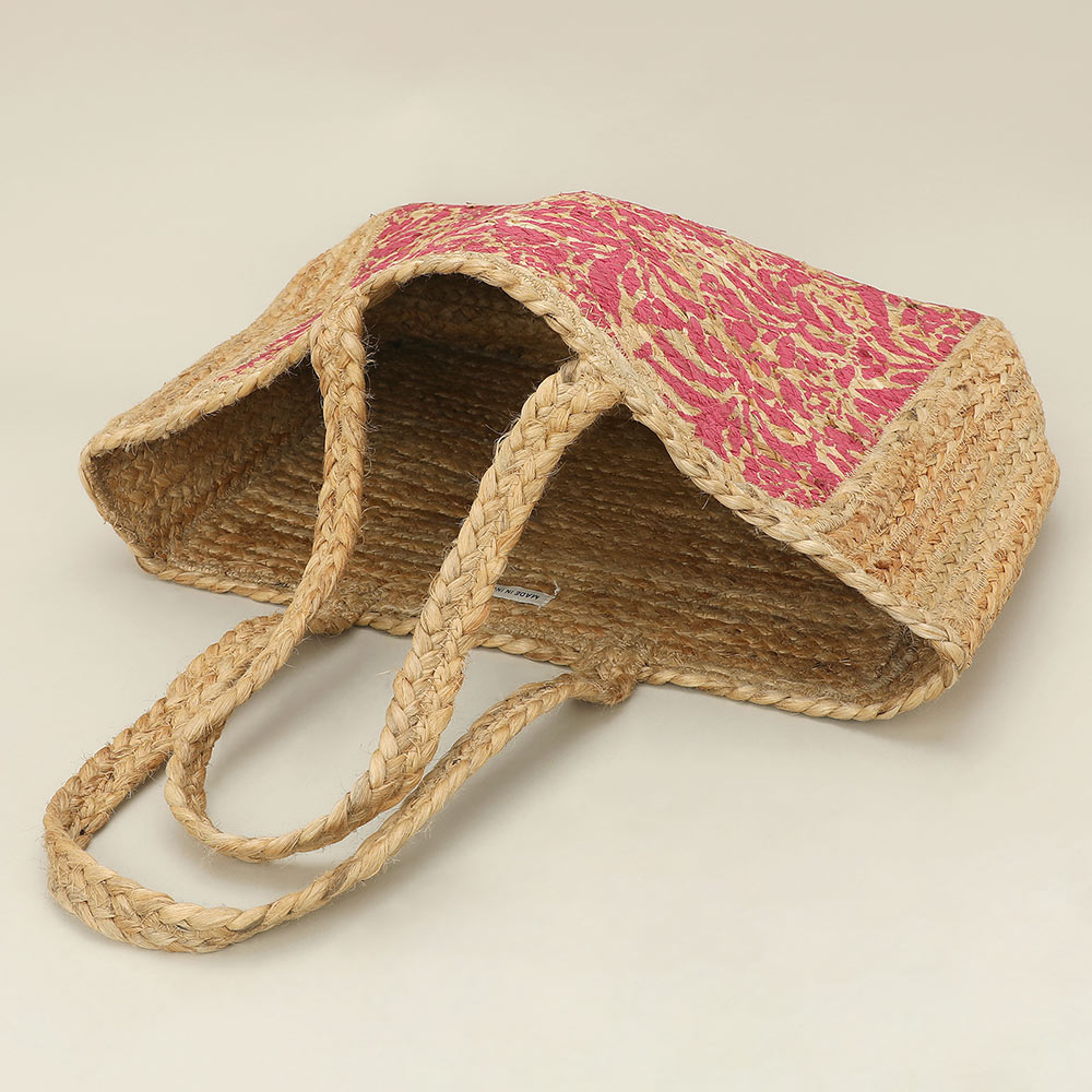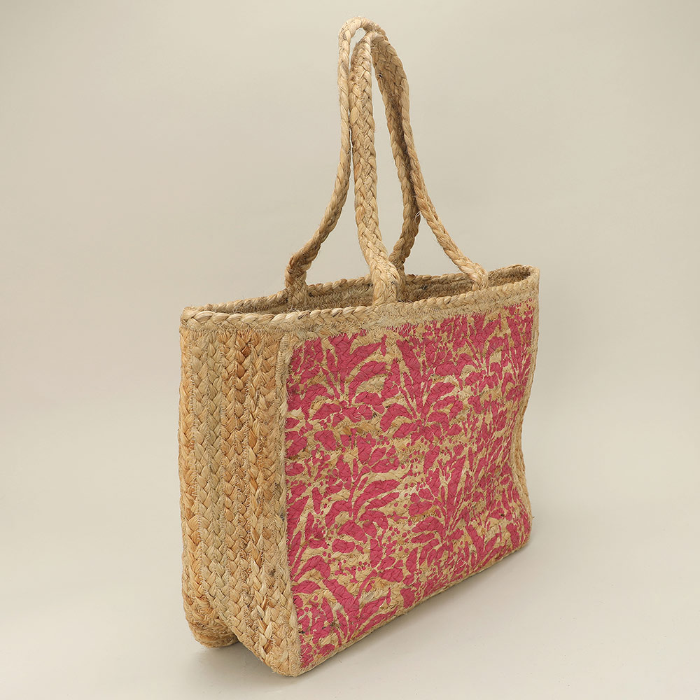 Details • Size : 14.25" X 12" X 6.5" • Top Handle Size : 9.5" L • Stylish woven tote bag designed with a botanical-inspired pattern and a structured silhouette for everyday versatility. Spacious interior easily carries daily essentials, making it perfect for shopping, travel, or casual outings. Lightweight and easy to carry, ideal for boutiques seeking unique, nature-inspired statement tote bags. • Made In India