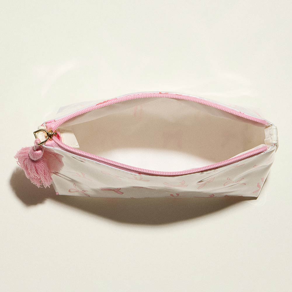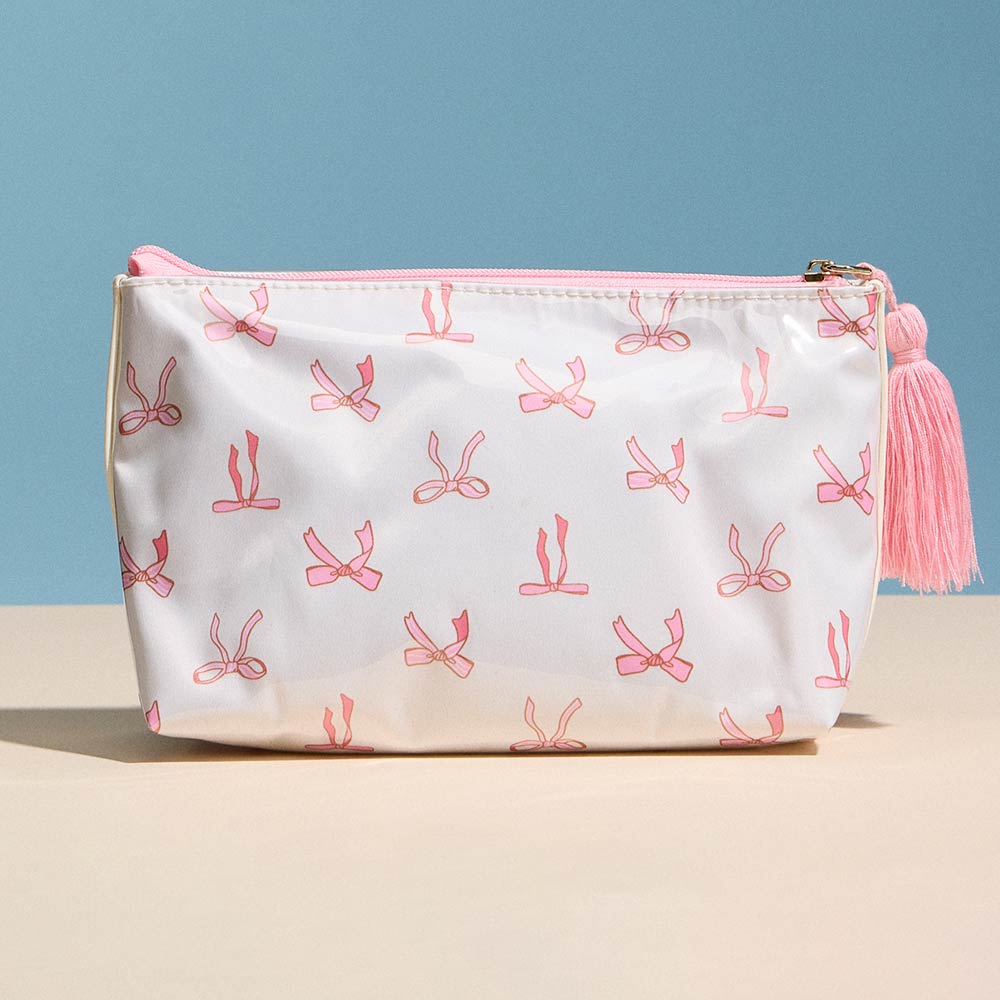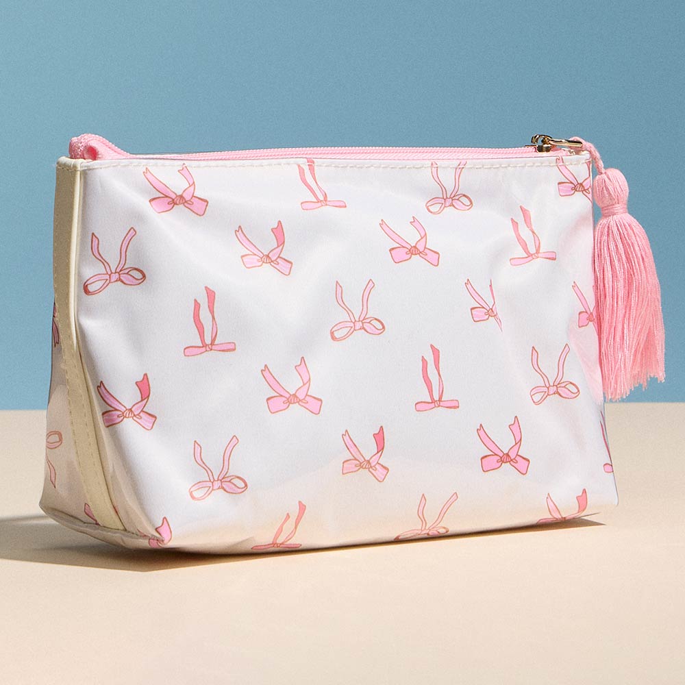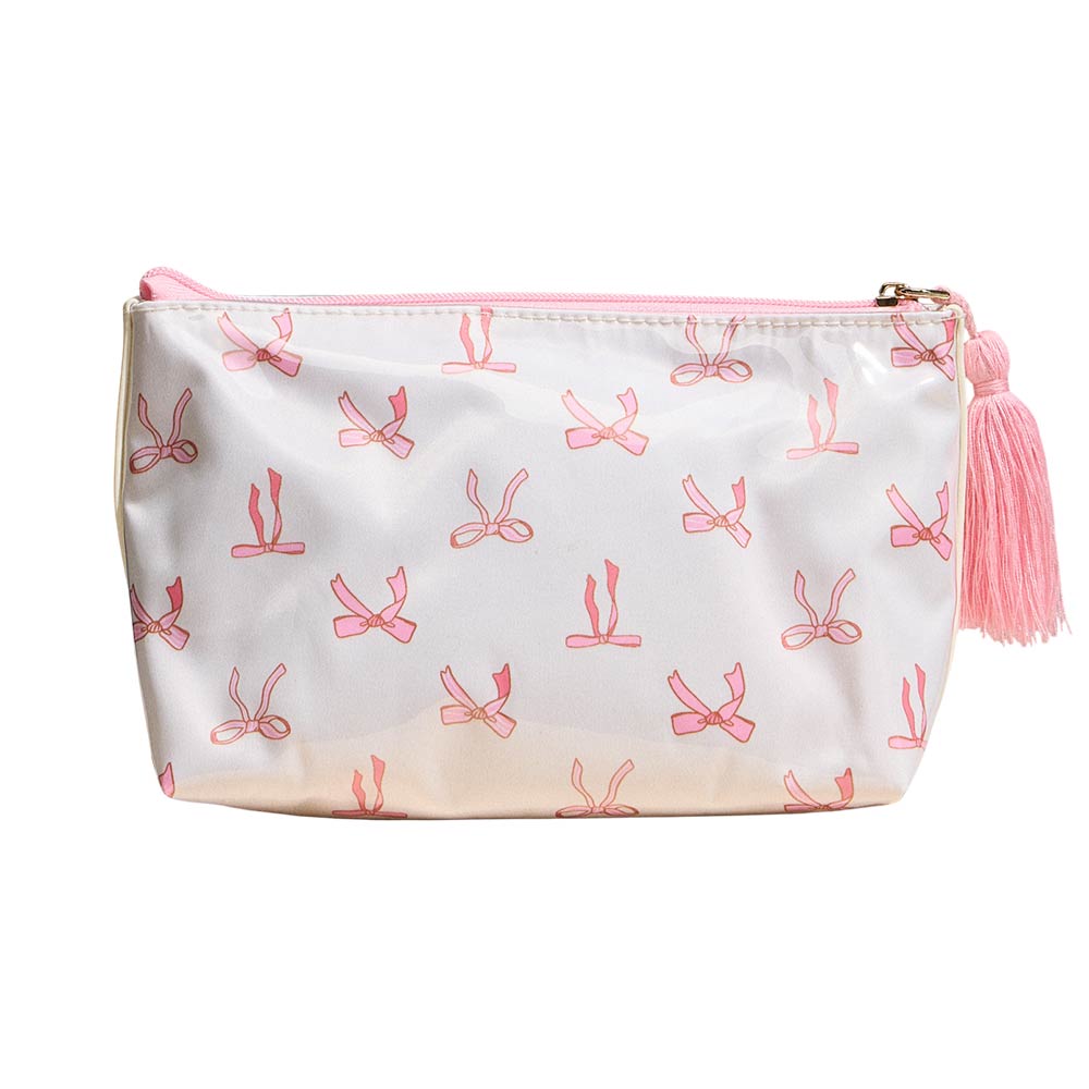 Details • Size : 9.5" X 5.5" • Zipper Closure • Compact zip pouch designed for organizing makeup, toiletries, and daily essentials with ease. Features a secure zipper closure, roomy interior for travel or everyday use, and a decorative tassel accent for added style. Ideal for handbags, luggage, gym bags, or quick organization on the go.