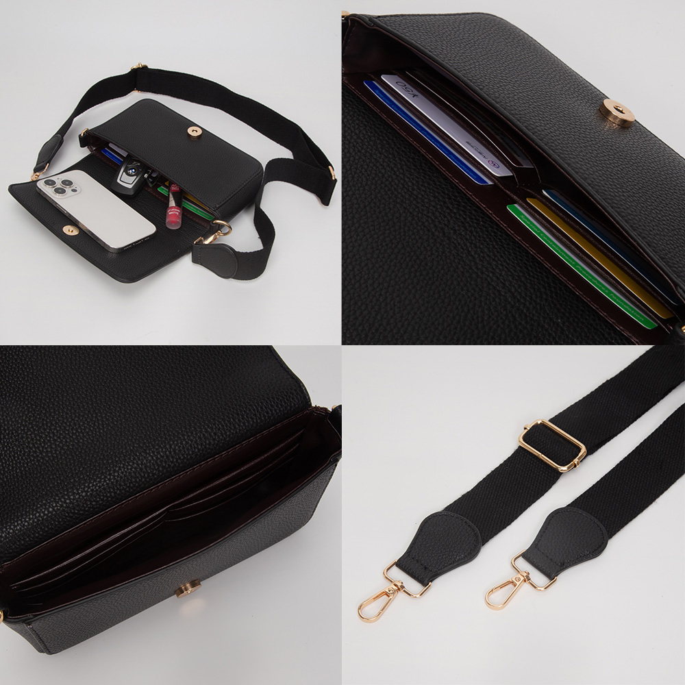 • Stay stylish and organized with this structured mini crossbody bag. Featuring a sleek silhouette, secure flap closure, and adjustable wide strap, it blends functionality with modern elegance—perfect for daily wear, travel, or effortless hands-free convenience.