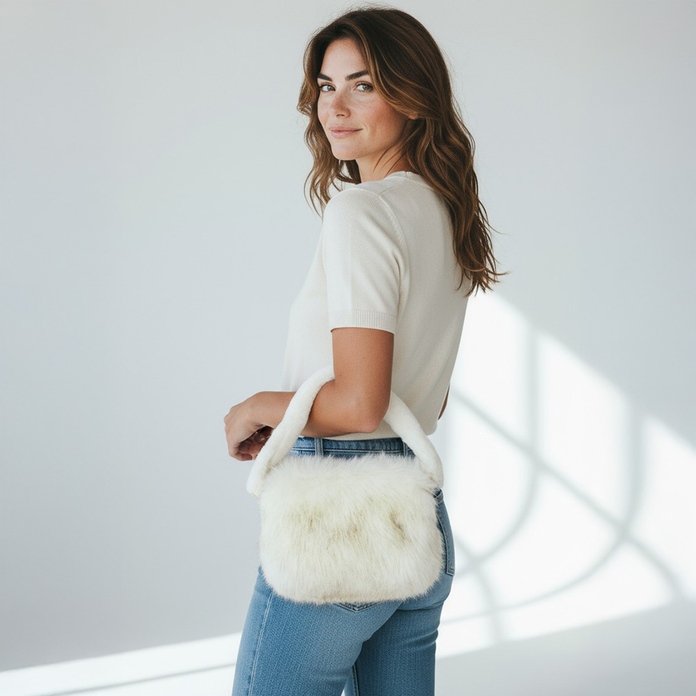 Furry Faux Fur Top Handle Plush Shoulder Handbag