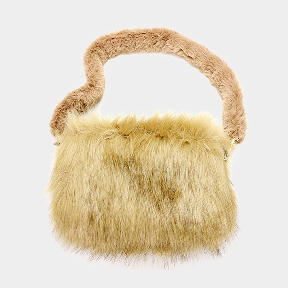 Furry Faux Fur Top Handle Plush Shoulder Handbag