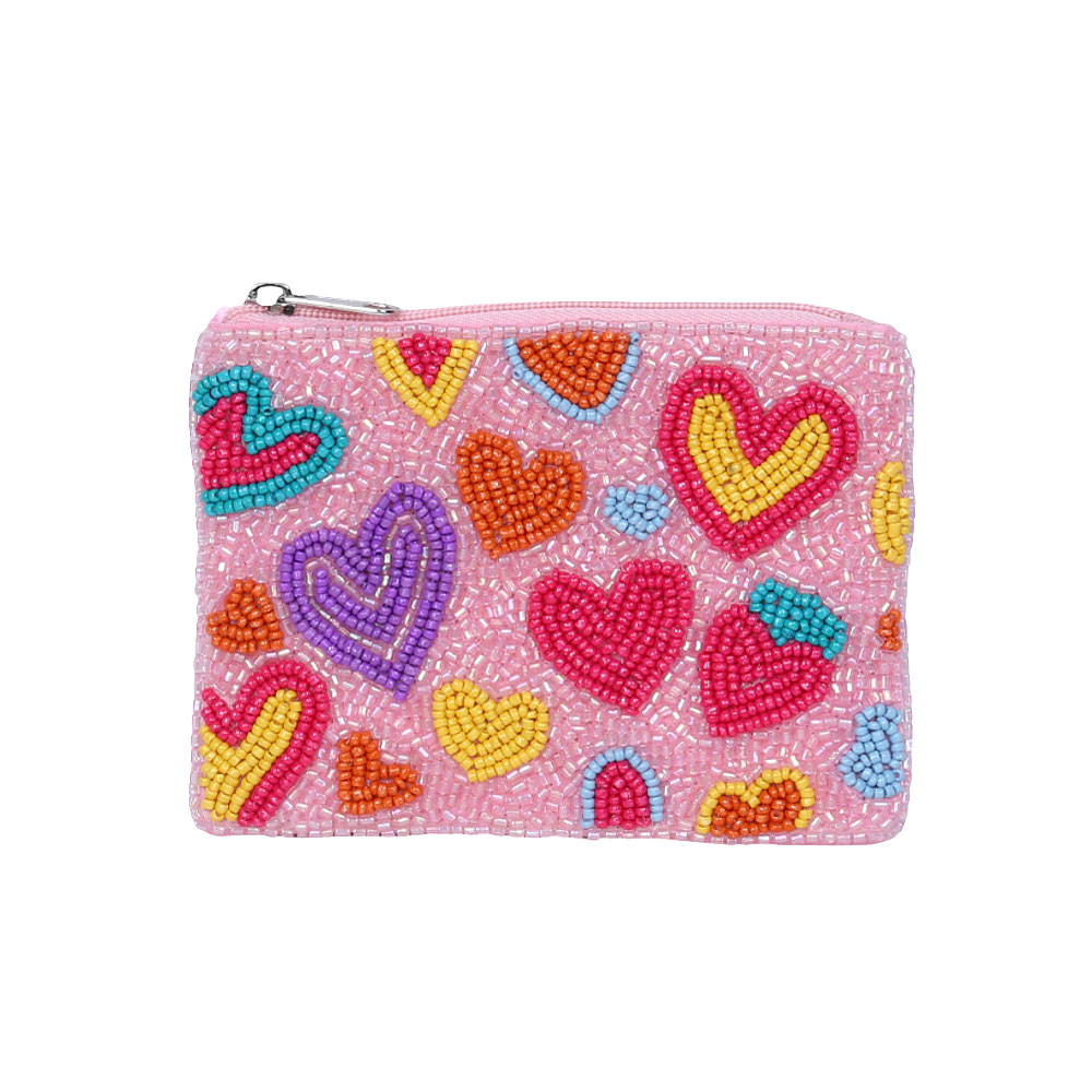 Details • Size : 5" X 3.75" (appx) • No Inside Pocket • Beads On Front Only • Bag Only (items are not included) • Zipper Closure • Brighten your day with this charming beaded coin pouch featuring a playful heart pattern. Perfect for carrying small essentials, it adds a fun, expressive touch to any look. A delightful accessory that makes a thoughtful gift for anyone who loves vibrant, cheerful designs. • Made In India