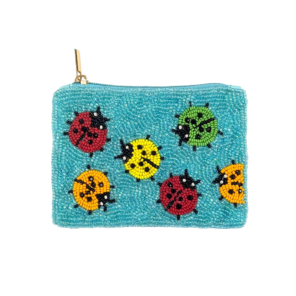 Details • Size : 5" X 3.75" (appx) • No Inside Pocket • Beads On Front Only • Bag Only (items are not included) • Zipper Closure • Brighten your day with this playful beaded coin pouch featuring a cheerful pattern of colorful ladybugs. Its compact shape keeps small essentials organized while adding a charming, nature-inspired accent that’s perfect for gifting or daily use. • Made In India