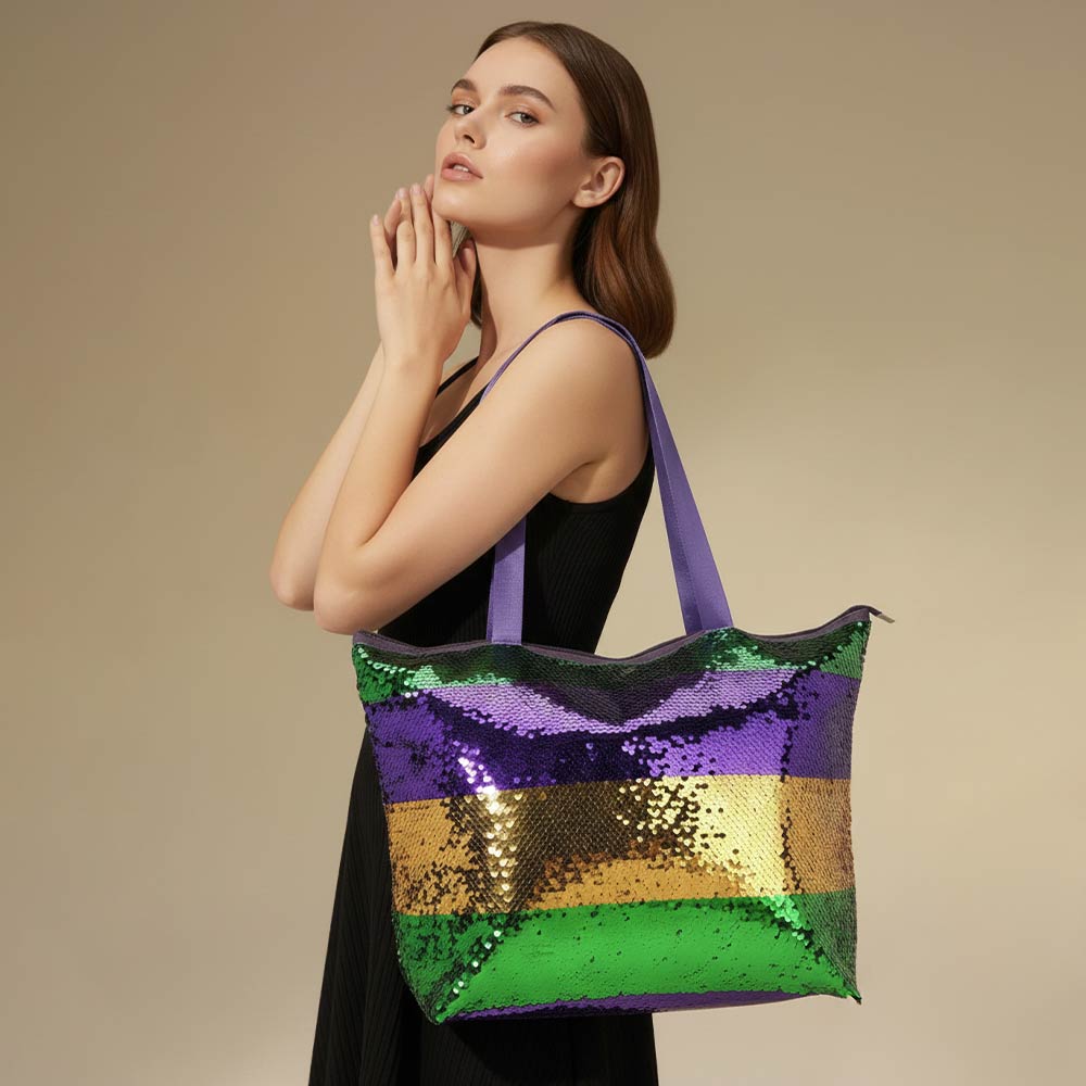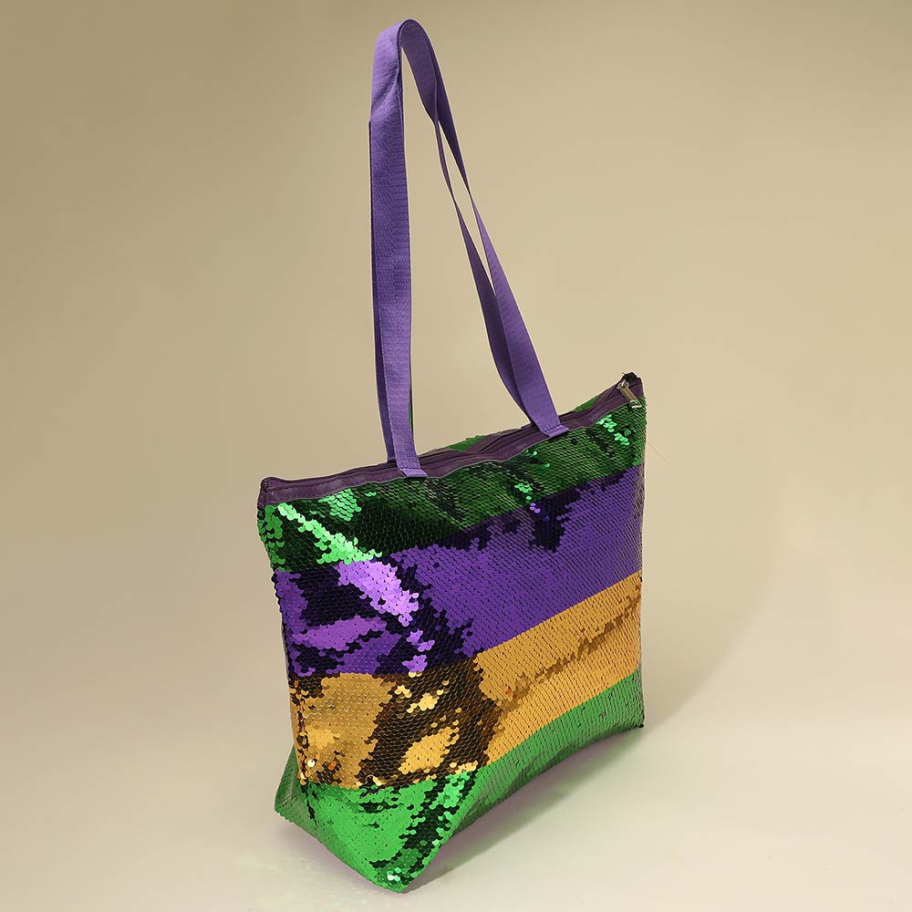 Mardi Gras Sequin Stripe Shoulder Tote Bag