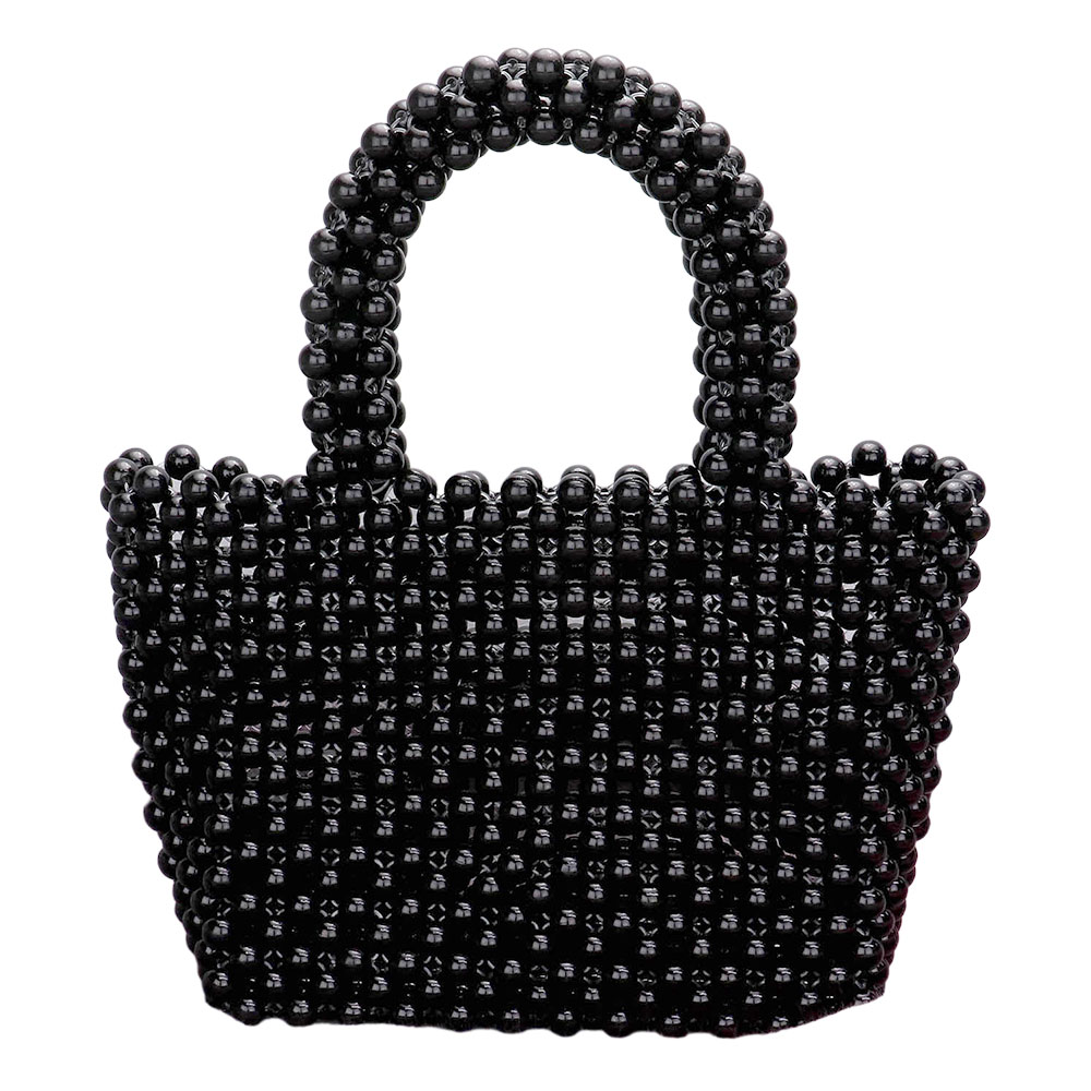 Details • Bag Size : 7" X 6" X 3.5" • Top Handle Size : 4.25" L • No Inside Pocket • This mini handbag features a refined beaded exterior with a structured silhouette and curved top handles. Ideal for evening events or statement accessorizing, it brings a bold yet elegant flair to any outfit.