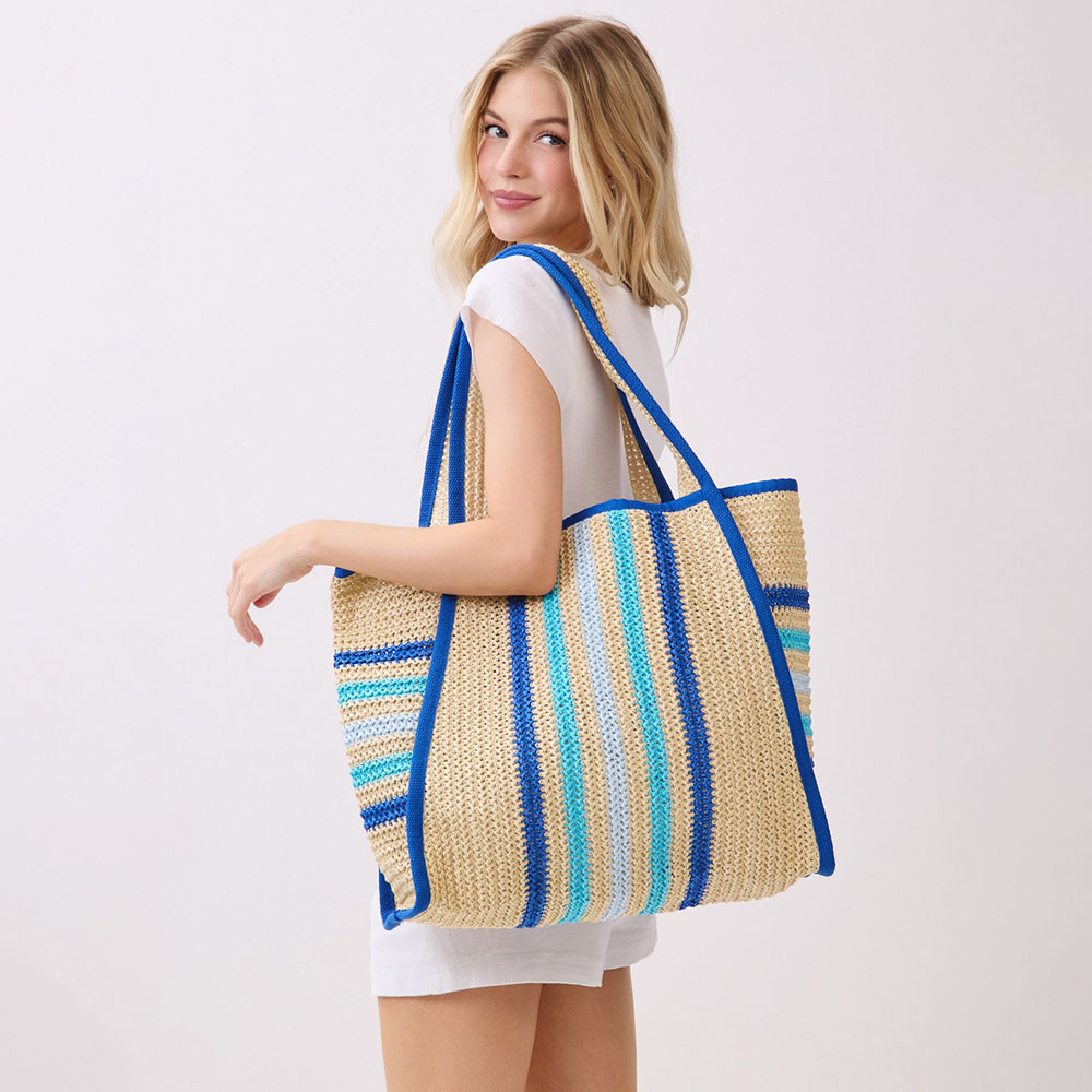 • Spacious oversized tote bag designed for everyday carry, travel, shopping, and beach use. Features a structured silhouette with vertical stripe detailing, comfortable shoulder straps, and an open interior for easy access. A versatile statement bag ideal for boutique and lifestyle collections.