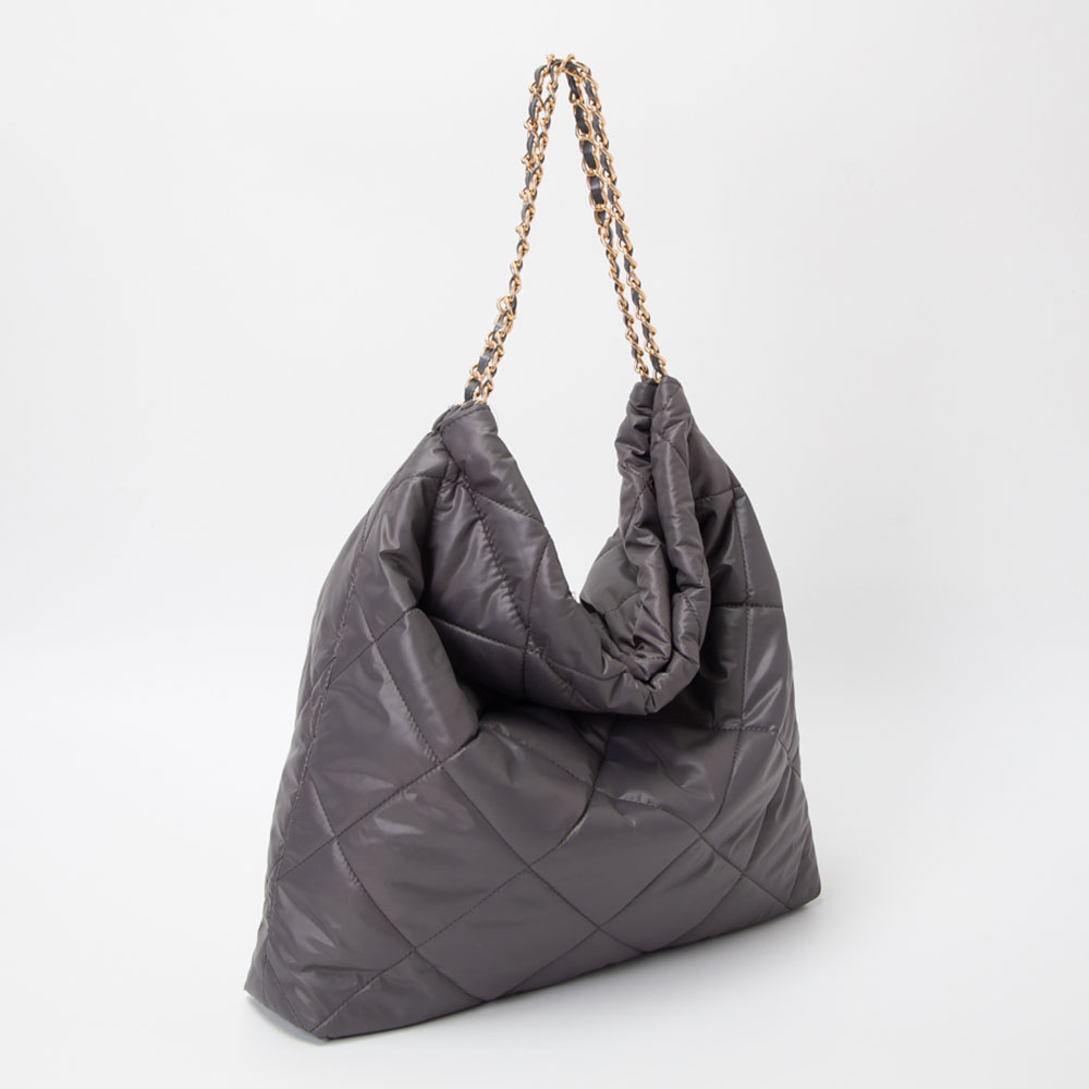 Details • Size : 13.4" X 13" X 3.5" • Strap : Adjustable • One Inside Zipper Pocket • One Inside Slip • Pocket • One Inside Pouch Bag (7.75" X 4.75", Zipper Closure) / Attachable • Elevate everyday style with this quilted oversized shoulder bag featuring a chic chain handle and a soft, slouchy silhouette. Spacious and versatile, it’s ideal for daily use, offering a fashionable blend of practicality and modern design for work, travel, or casual outings.