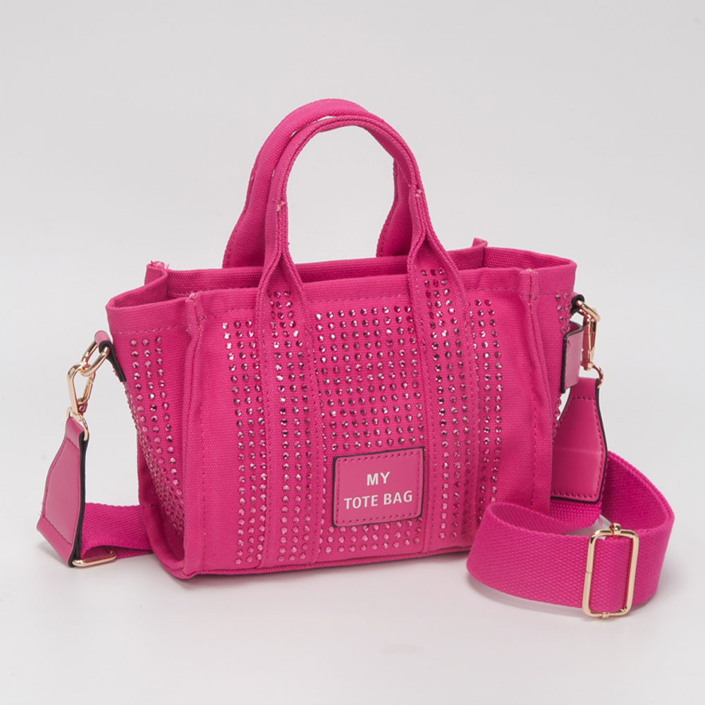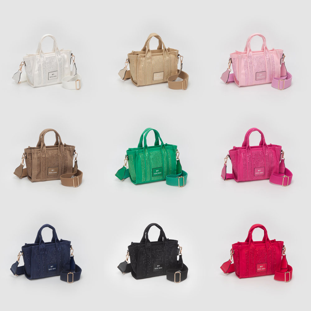 • Stylish small tote bag featuring a structured silhouette accented with sparkling embellishments for eye-catching appeal. Designed with top handles and an adjustable strap, this compact bag is perfect for carrying small essentials while adding a playful, fashion-forward touch to everyday looks and boutique collections.