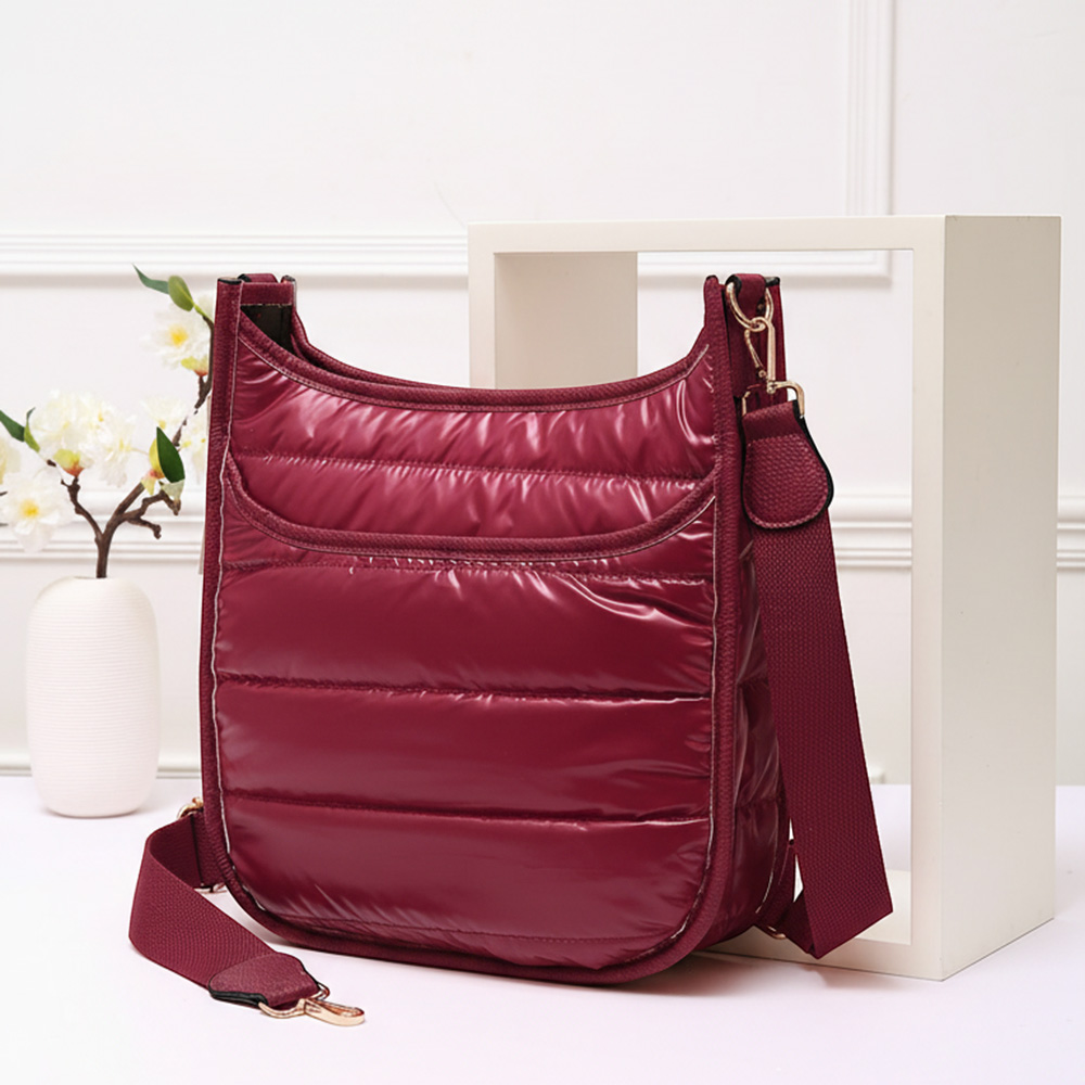 Solid Quilted Shiny Puffer Crossbody Bag