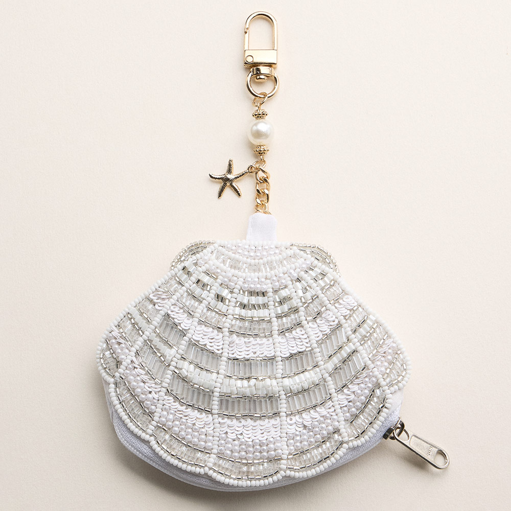 Details • Size : 4.5" X 3.5" (appx), 3.25" L • No Inside Pocket • Beads On Front Only • Bag Only (items are not included) • Zipper Closure • Decorative shell design zipper pouch with keychain clip, ideal for coins, earbuds, cash, or small essentials. Compact and lightweight for handbags or backpacks, perfect for gift shops, beach themed assortments, summer displays, and everyday on the go organization. • Made In India