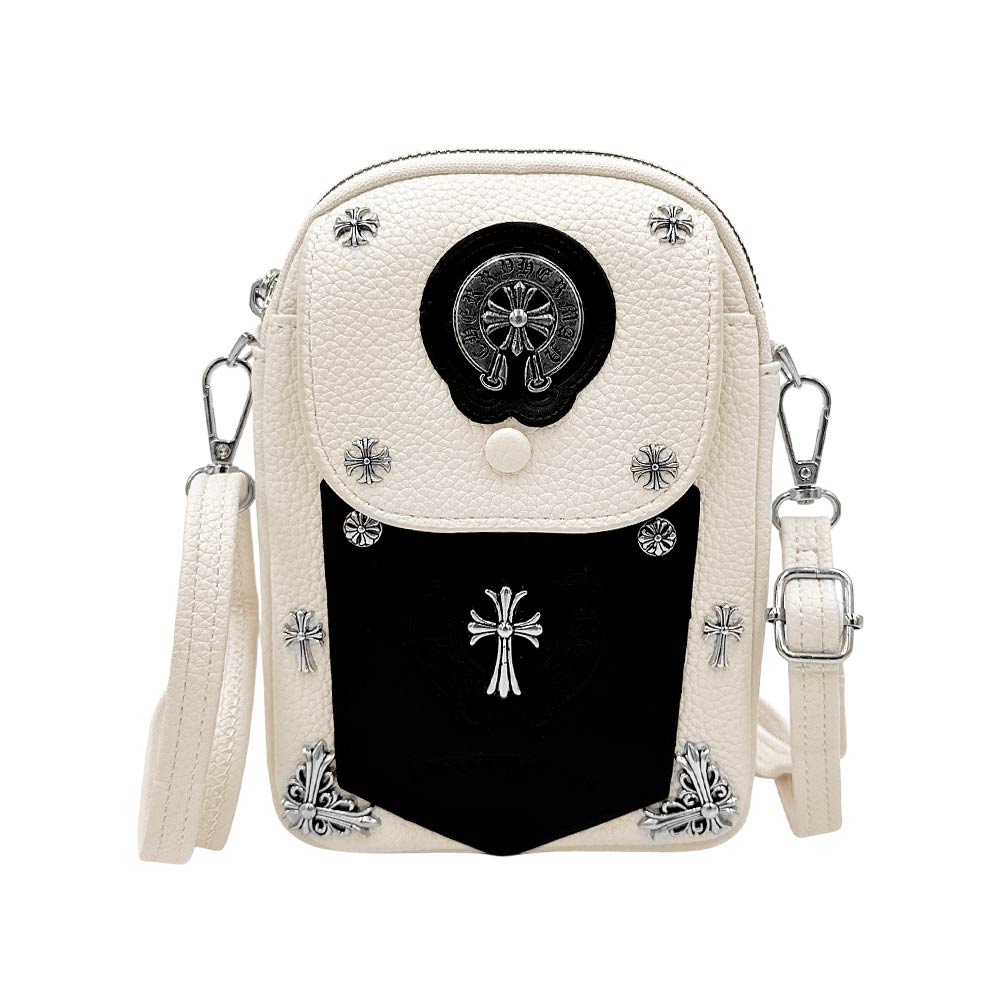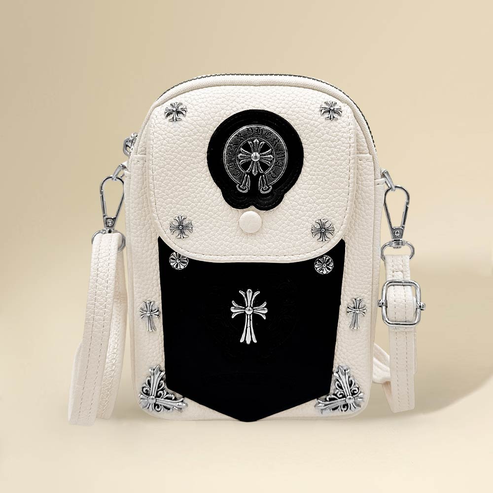 Details • Size : 5.1" X 7.1" X 1.2" • Strap Size : 54" L / Adjustable, Detachable • One Outside Snap Closure Slip Pocket • One Inside Slip Pocket • Zipper Closure • Material : 100% Polyurethane (Shell), 100% Polyester (Lining) • Compact crossbody bag designed for hands-free convenience and standout style. Features detailed accents and a structured shape ideal for carrying daily essentials. Perfect for casual outings, travel, concerts, or festivals, offering functional storage with a bold, fashion-forward look.