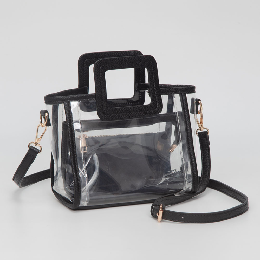 • Stylish clear 3-piece bag set featuring a structured top-handle tote, detachable crossbody insert and matching zip pouch. Ideal for stadium events and everyday organization, offering convenient storage, lightweight design and versatile carrying options for on-the-go use.