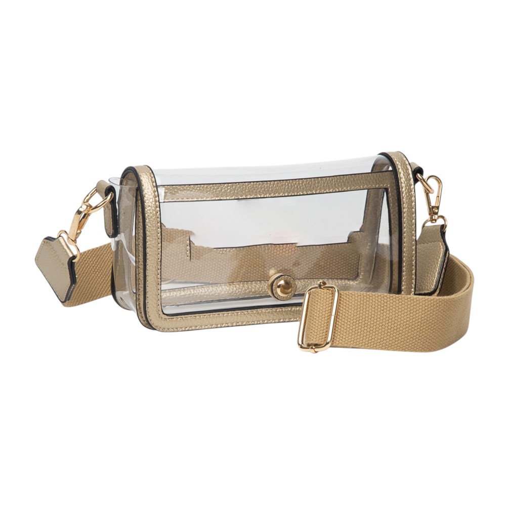 • Stay stylish and compliant with this clear stadium-approved crossbody bag, featuring black trim, secure snap closure, and an adjustable shoulder strap for comfort. Perfect for concerts, sporting events, festivals, and everyday use, offering convenience while meeting event regulations with ease.