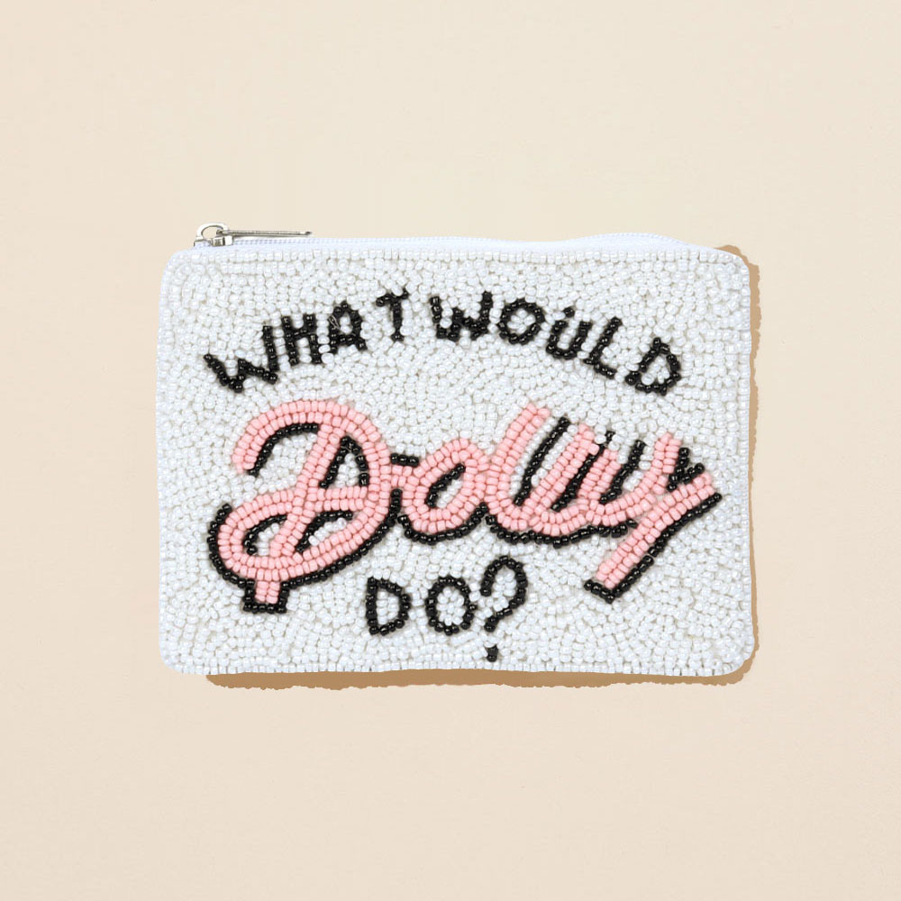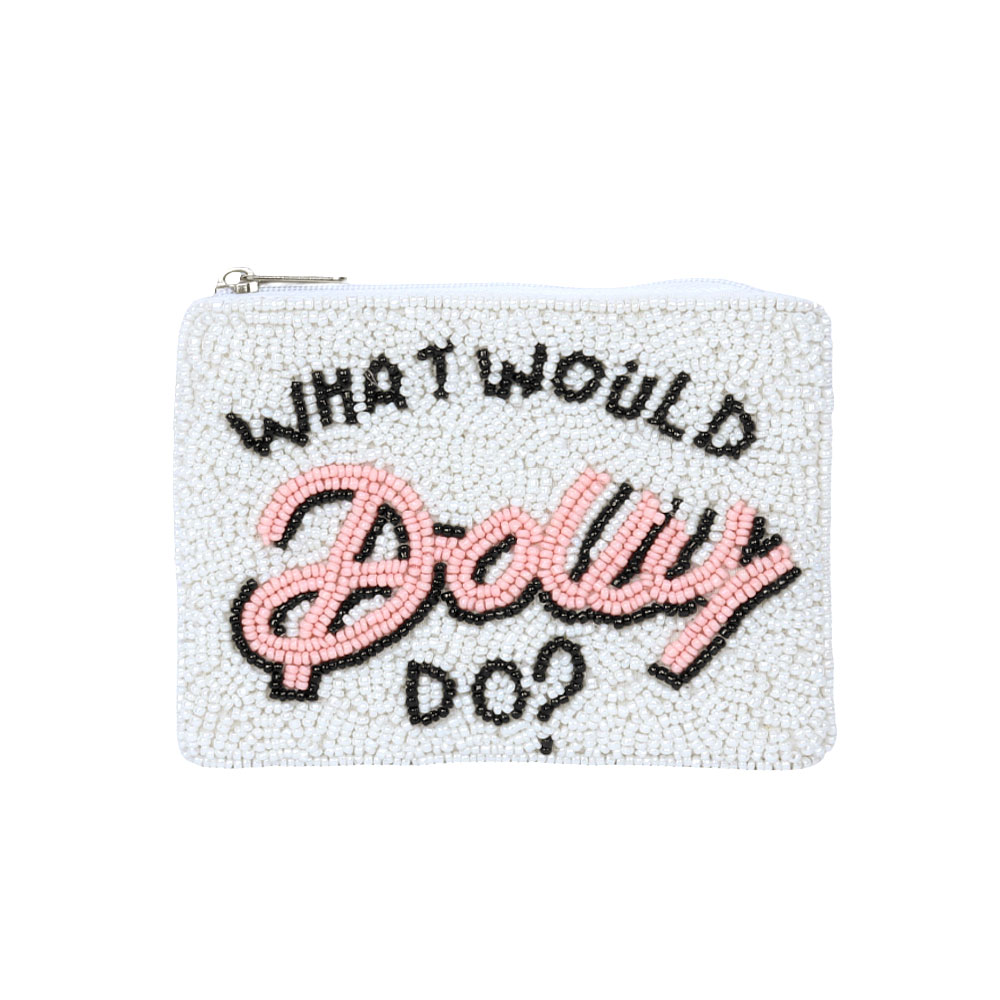 Details • Size : 5" X 3.75" (appx) • No Inside Pocket • Beads On Front Only • Bag Only (items are not included) • Zipper Closure • Celebrate iconic charm with this beaded coin pouch featuring an uplifting “What Would Dolly Do?” message. Hand-embellished for standout detail, it brings personality and inspiration to everyday organization, keeping your small essentials stylishly within reach. • Made In India