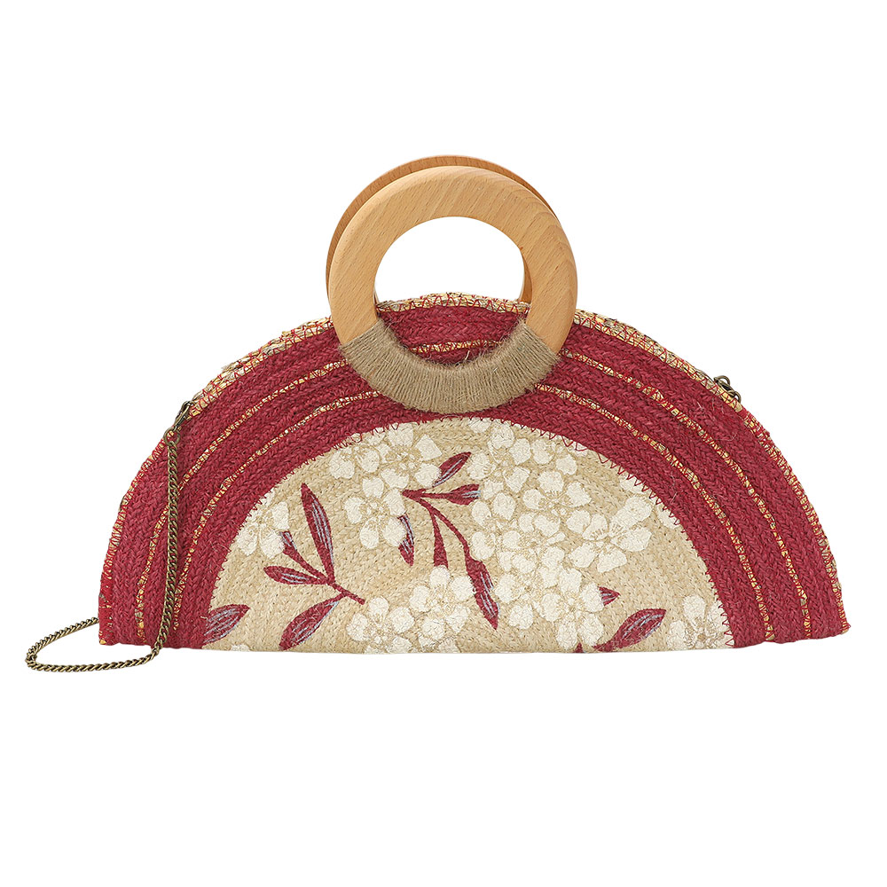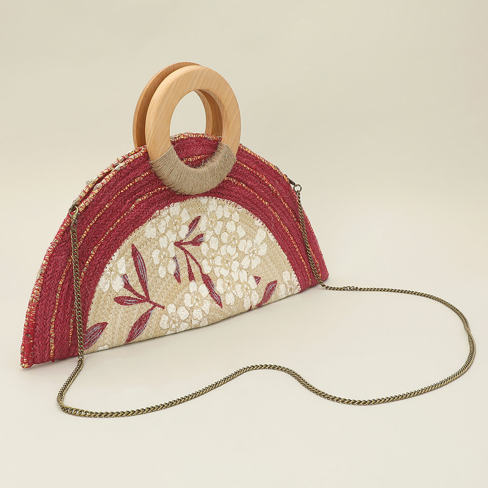 Details • Size : 16.5" X 8.25" • Top Handle Size : 4" L • Strap Size : 46" L / Detachable • Charming half moon crossbody bag designed with a decorative floral pattern and structured top handle for standout style. Compact yet functional interior holds daily essentials with ease. Includes a detachable strap for versatile wear, perfect for casual outings, vacations, or boutique collections seeking unique statement accessories. • Made In India