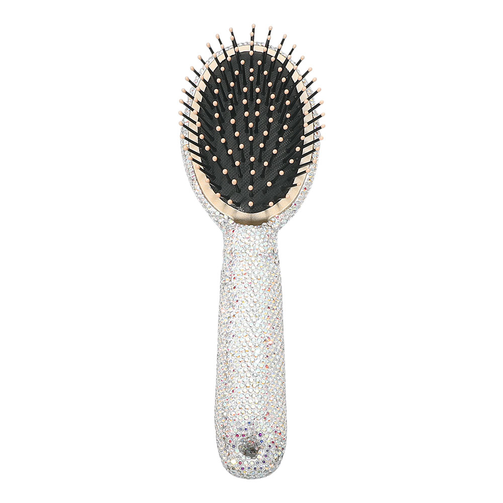 Details • Size : 3" X 9.5" • Statement hair brush designed with a crystal style handle and cushioned bristle base to help detangle and smooth hair with ease. Comfortable to hold and gentle on the scalp, this glam beauty essential is ideal for daily styling, gifting, or adding a polished touch to vanities and salon displays.