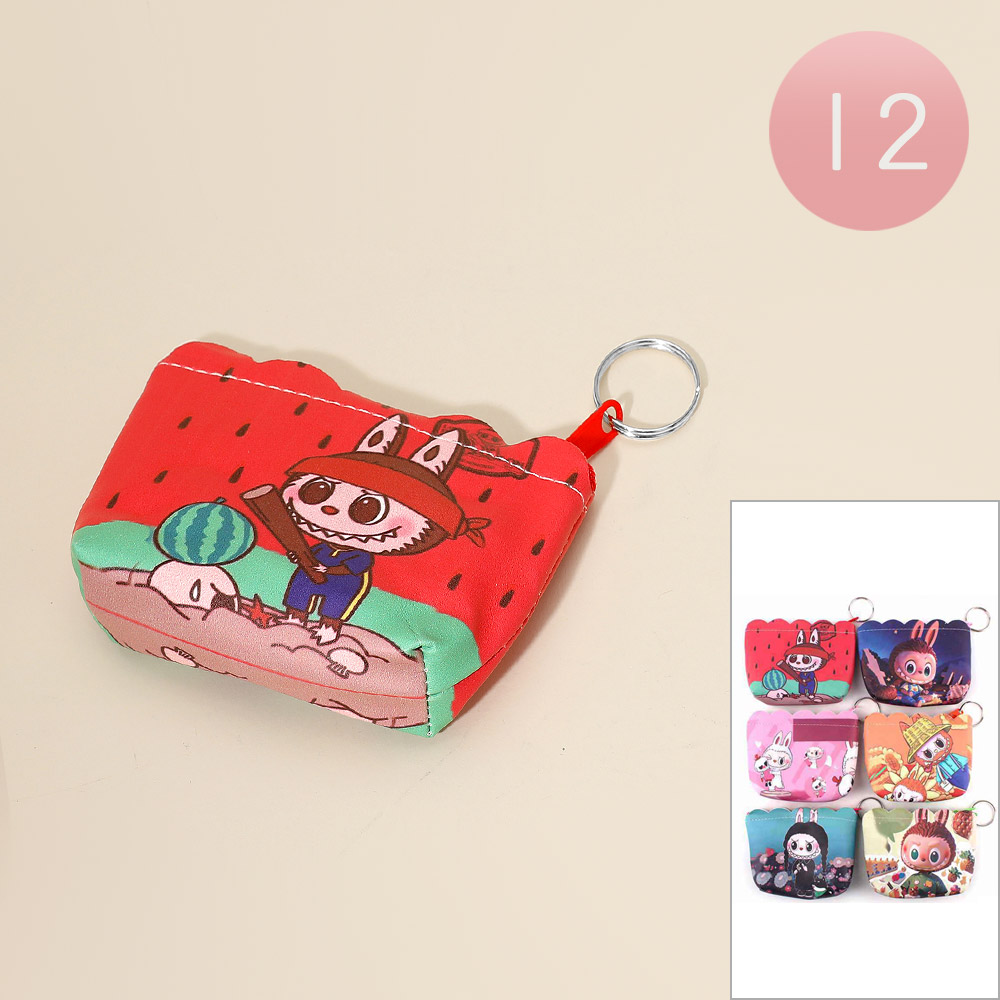 12PCS - Adorable Monster Bunny Character Printed Mini Keychain Pouch Bags Coin Purses