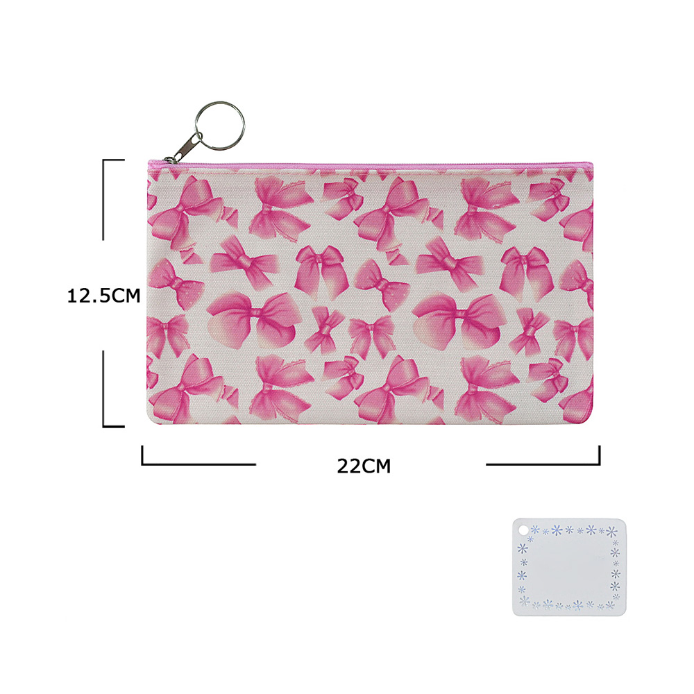 Details • Size : 8.6" X 5" • Zipper Closure • Set of 12 zipper pouches featuring charming bow print designs. Perfect as party favors, gift packaging, or everyday storage for small items like stationery, cosmetics, or accessories. Lightweight and reusable, these pouches combine practicality with a cute decorative touch.