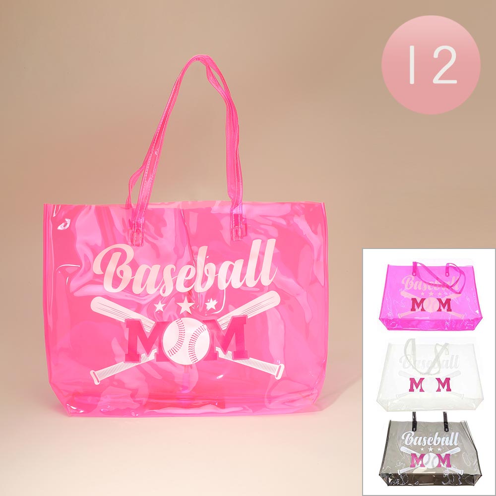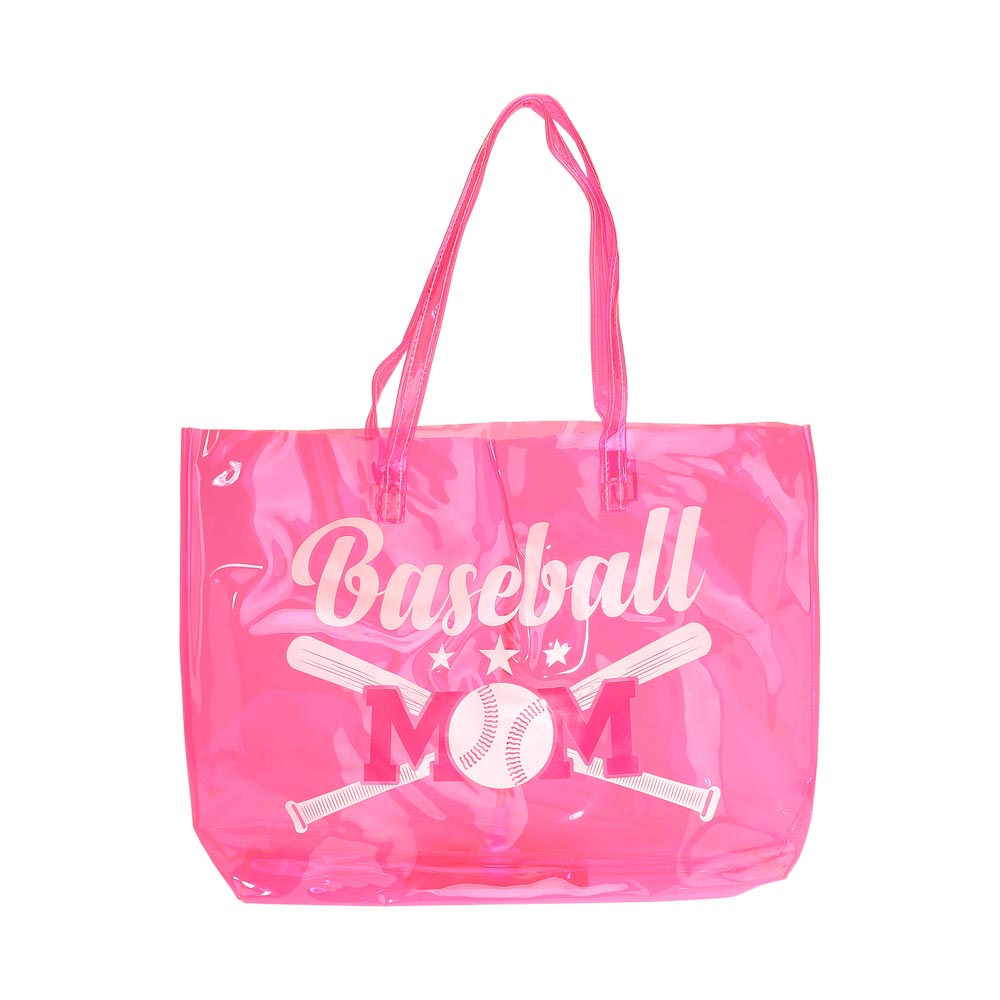 Details • Size : 18" X 11" • Top Handle Size : 9" L • A stylish clear tote bag featuring a bold “Baseball Mom” design, perfect for game days, shopping, travel, and everyday use. Offers roomy storage with comfortable handles, making it ideal for carrying essentials while showing sporty pride on the go.