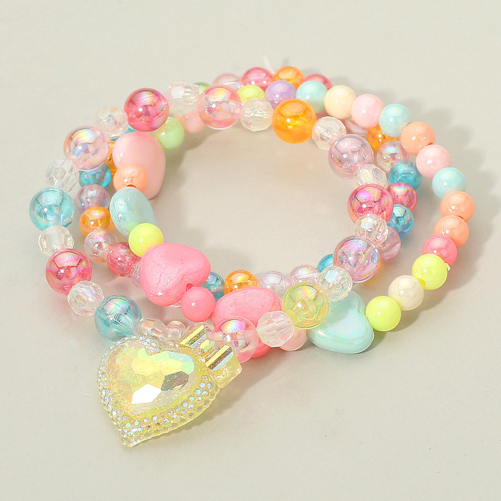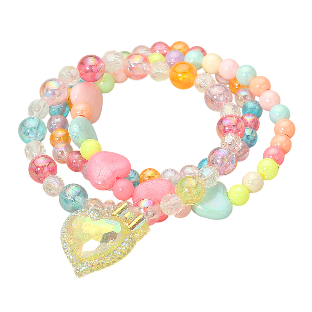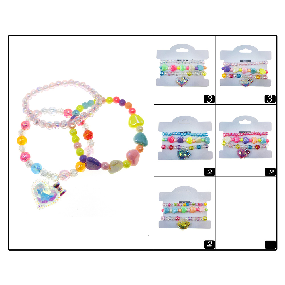 Details • Size : 1.75" H • Stretchable • Cute kids’ bracelet set featuring a faceted heart charm with sparkling accents and playful beaded designs. Stretchy and comfortable, this 12-piece pack is perfect for gifting, parties, or everyday wear, adding fun, whimsy, and charm to children’s accessory collections.