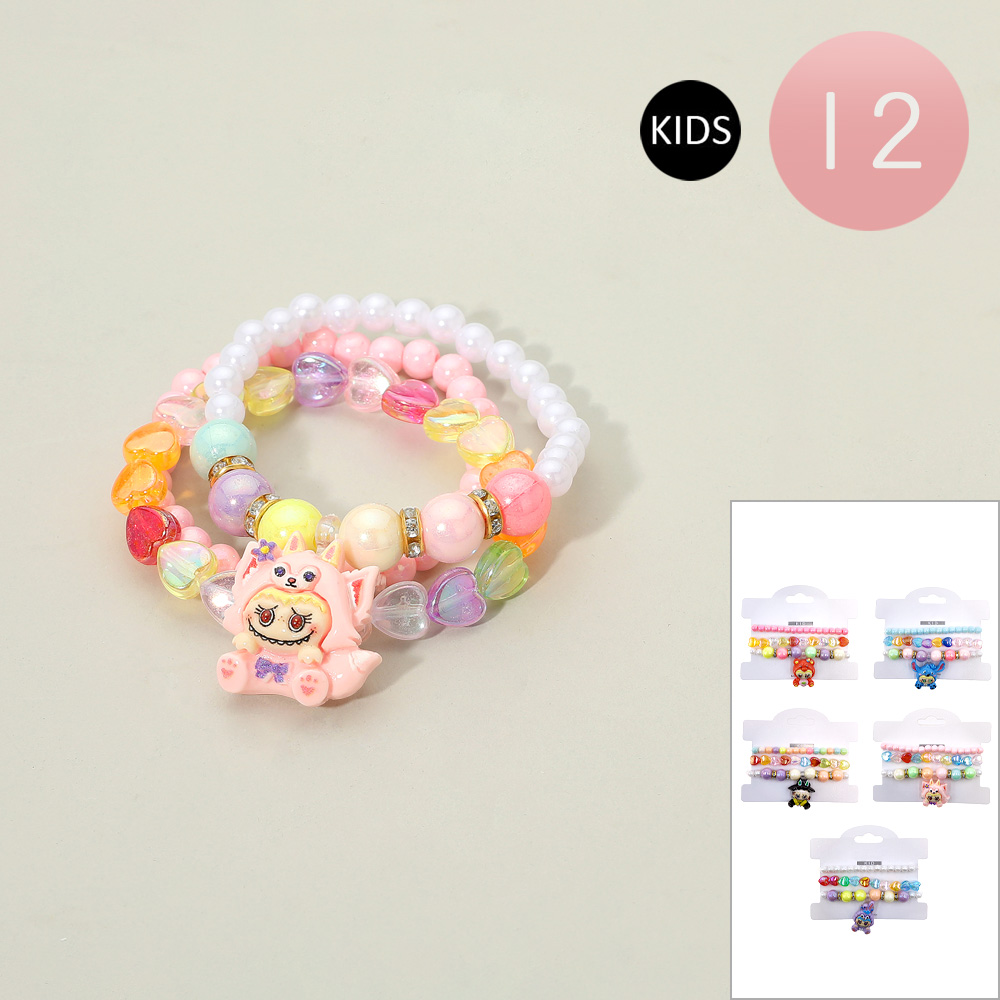 Details • Size : 1.75" H • Stretchable • Adorable kids’ bracelet set featuring stretch beaded designs with cute cartoon charms. Comfortable and easy to wear, perfect for daily play, parties, or gifting. A fun accessory pack that adds playful style to any outfit while delighting children with colorful beads and charming details.