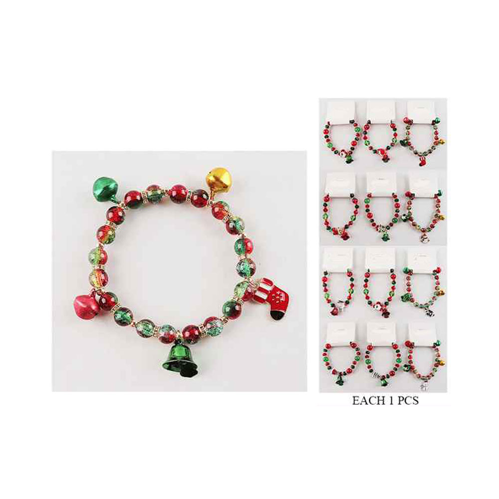 Details • Size : 0.4" H • Charm Size : Approximately 0.75" L • Stretchable • Celebrate the holidays in style with this Christmas beaded stretch bracelet featuring festive beads, a charm, and a jingling bell. Comfortable and easy to wear, this cheerful accessory adds seasonal sparkle to your look and makes a perfect holiday gift. • Lead and Nickel Compliant