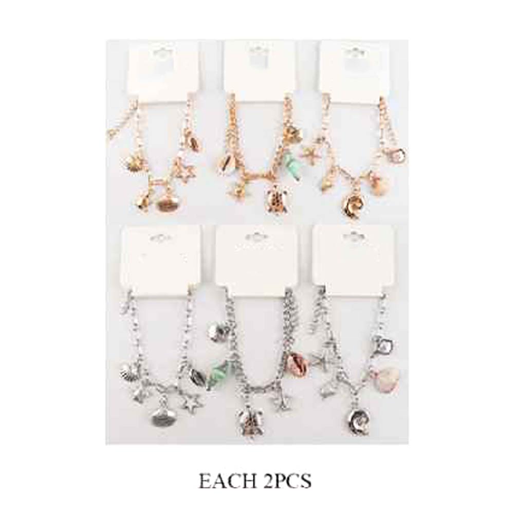 Details • Size : 0.2" H, 7.5" + 2.2" L • Charm Size : 1" L • Lobster Clasp Closure • This sea life charm chain bracelet features playful ocean-inspired charms including a turtle, starfish, shell accent, and natural-style bead detail. Designed with an adjustable chain for a flexible fit, it’s perfect for everyday styling, vacation-ready looks, and giftable charm jewelry collections for boutiques and seasonal assortments.