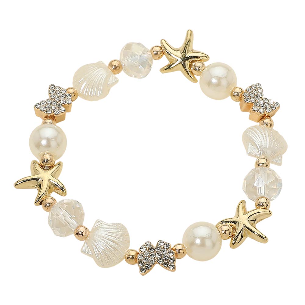 12PCS - Starfish Bow Shell Pearl Beaded Stretch Bracelets