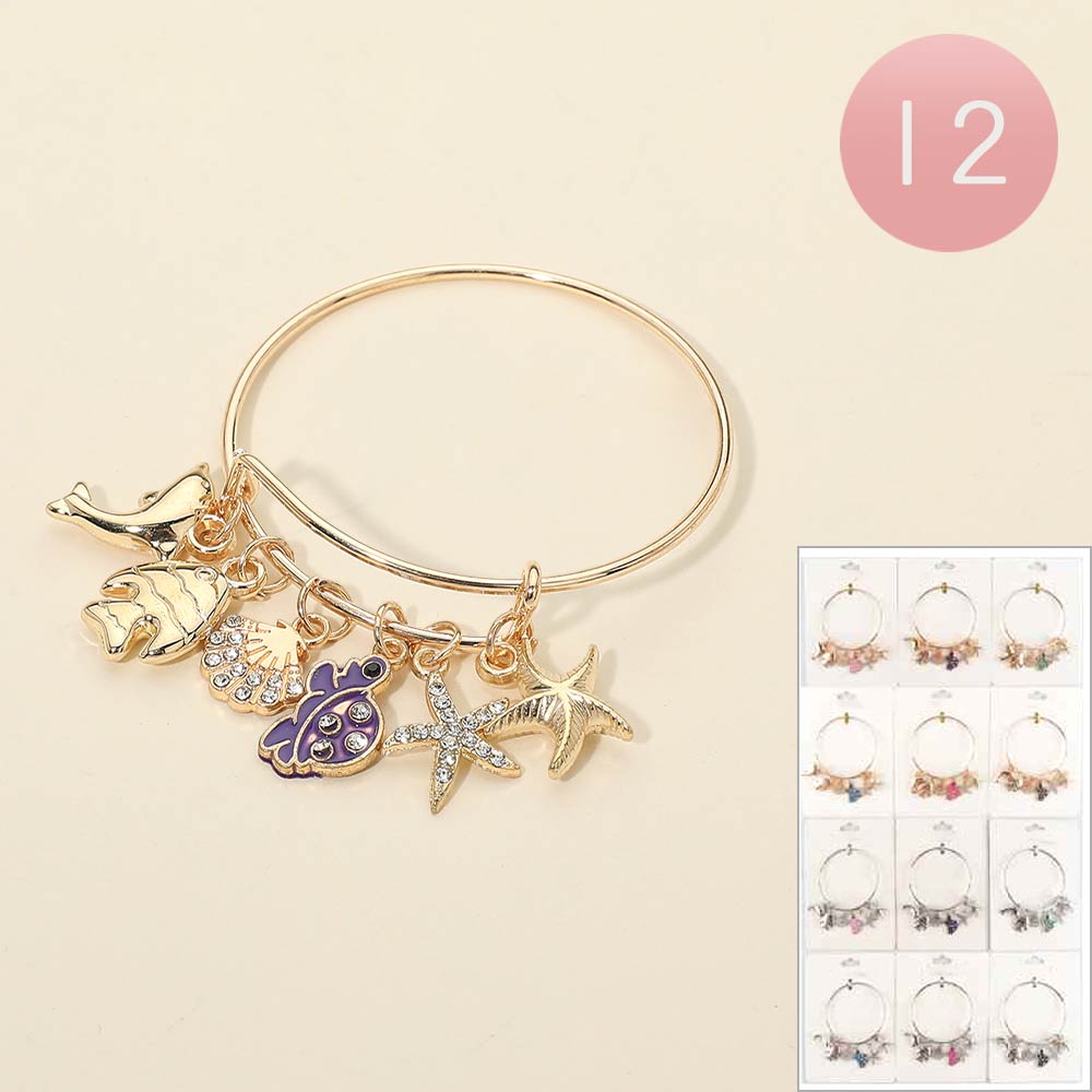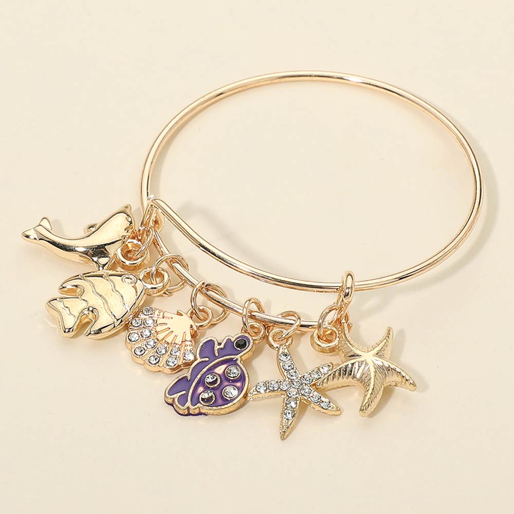 12PCS - Starfish Shell Dolphin Charm Bangle Bracelets