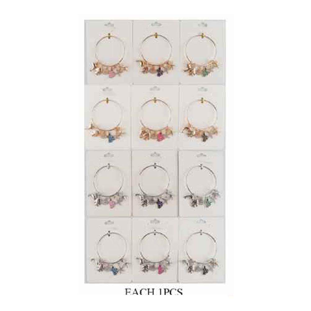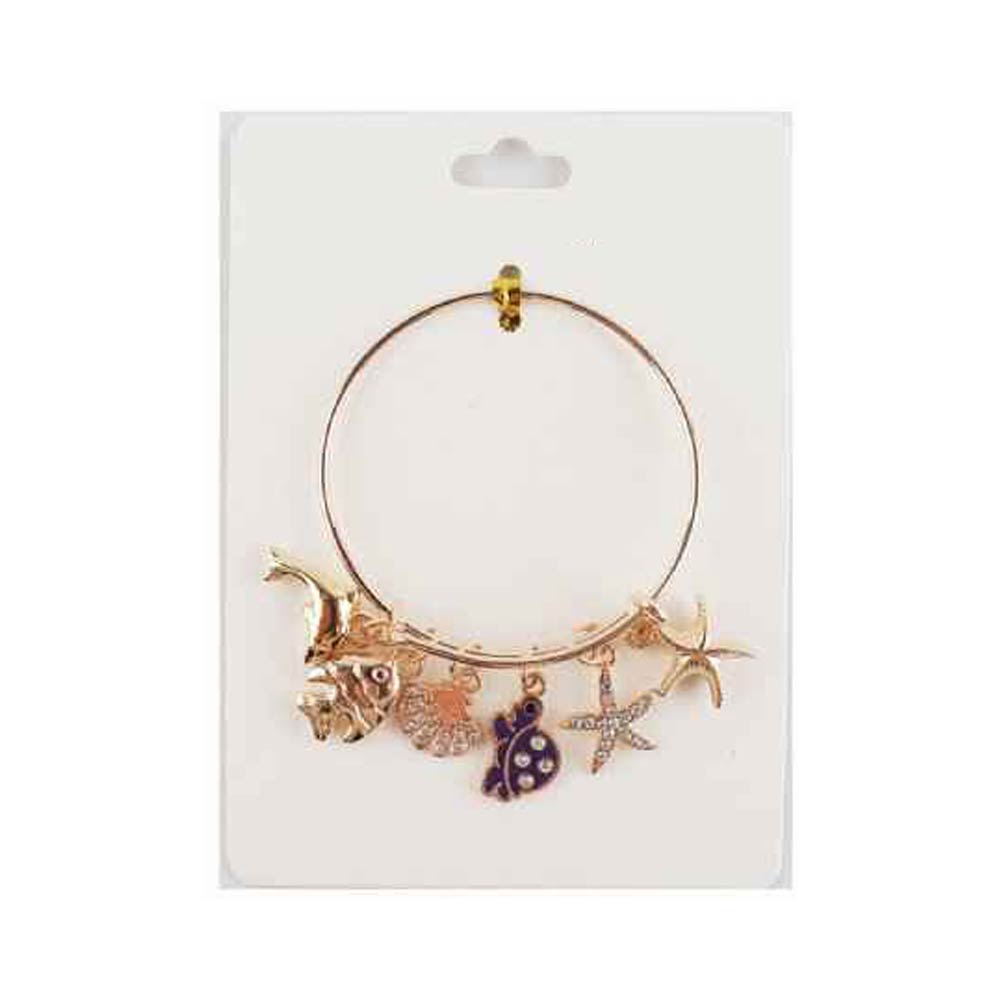 • This ocean-inspired charm bangle bracelet features a smooth rigid band accented with multiple dangling charms including sea life and nature motifs. Designed for easy wear and visual movement, it’s a great option for gift shops, beach-themed collections, and everyday accessory assortments that appeal to trend-focused shoppers.