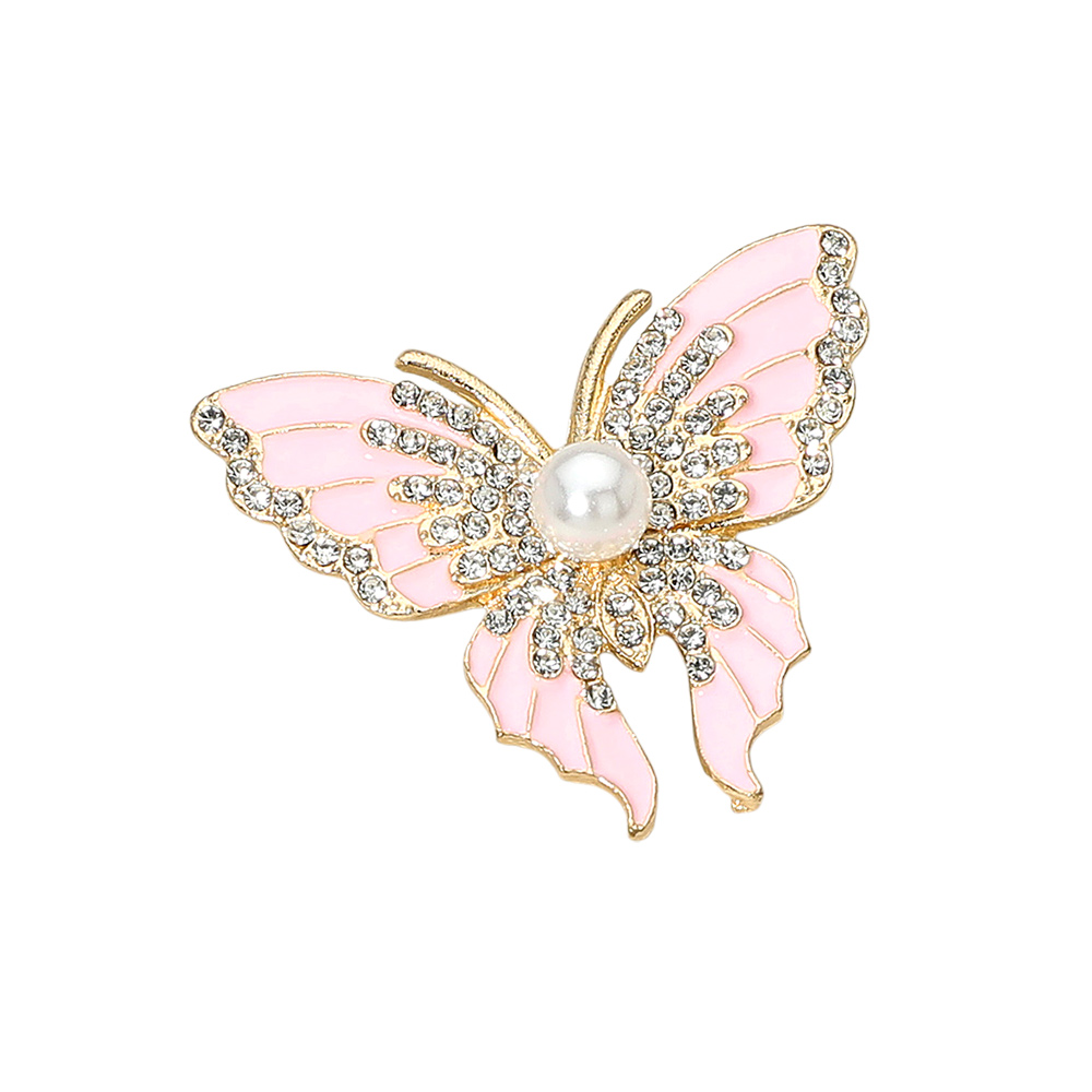 Details • Size : 1.5" X 1.3" • Pin Brooch • Charming butterfly brooch adorned with shimmering stone detail and a delicate centerpiece for a graceful touch. Perfect for pinning to jackets, scarves, hats, or bags, this accessory adds elegance and whimsy, making it a delightful gift or collection piece.
