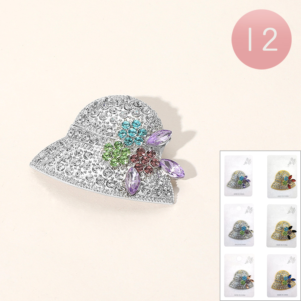 • Chic hat-shaped brooch with a sparkling floral crystal design. Perfect for adding flair to outfits, bags, or scarves. Set of 12, ideal for gifting or accessorizing.