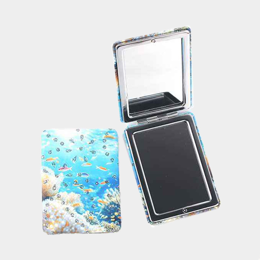 Details • Size : 2.4" X 3.3" • 2 In 1 - Plain Mirror And Magnifying Mirror • Bring the beauty of the sea with this compact mirror featuring a vibrant ocean theme. Lightweight and easy to carry, it’s perfect for touch-ups on the go and a stylish accessory for ocean lovers and travelers.