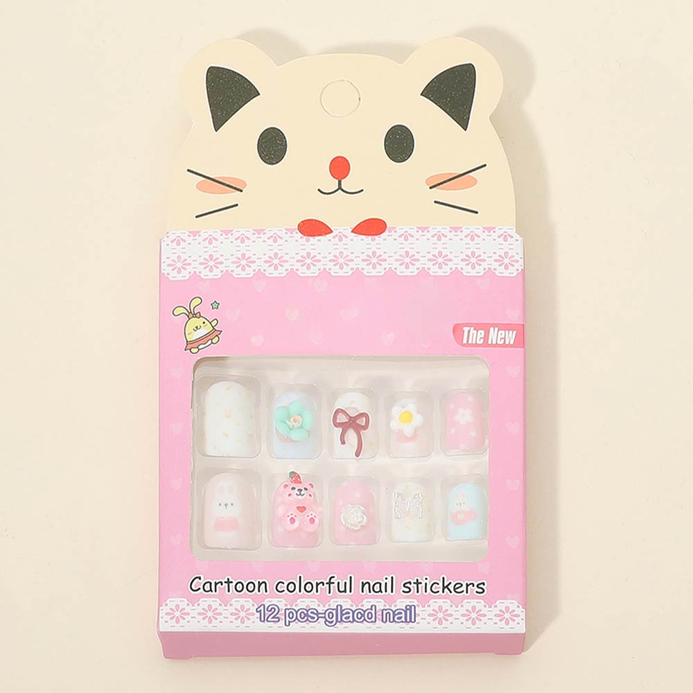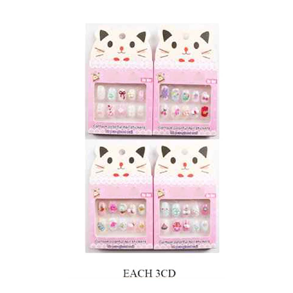 Details • Size : One Size • This kids cartoon press on nail set includes playful pre-designed nail decals made for easy, mess-free application. Created for little hands, each set offers fun character and cute accent designs that peel and stick effortlessly. Ideal for parties, playdates, gift bundles, and kids beauty accessories, these nail stickers encourage creativity, self-expression, and imaginative play without tools or drying time.